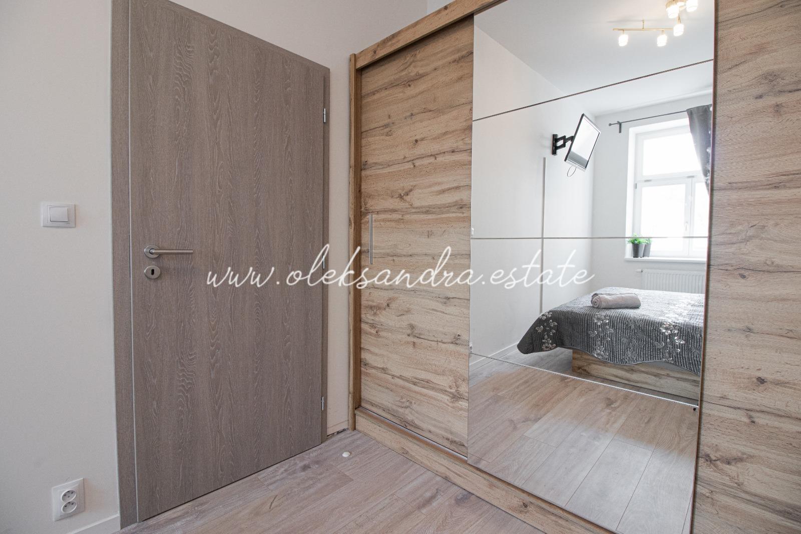 Byt se nabízí plně vybavený. Kuchyně disponuje lednicí, elektrickou troubou, varnou deskou, digestoří a jídelním stolem se židlemi. Součástí ložnice je postel s nočním stolkem a šatní skříň. V koupelně je sprchový kout, umyvadlo a toaleta.