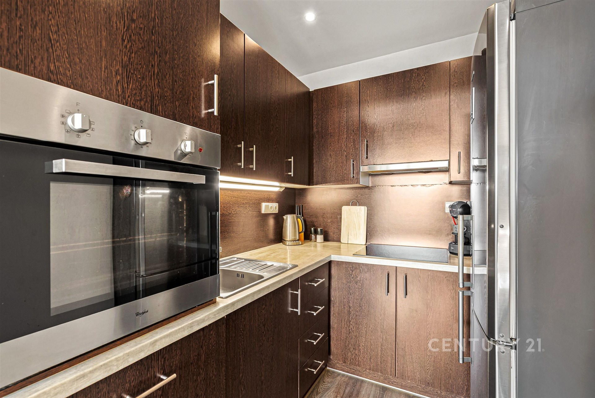 Byt je aktuálně prázdný a připravený pro nového nájemce. K dispozici zůstává kuchyňská linka včetně spotřebičů a vestavěné skříně, které zajišťují praktické a pohodlné bydlení.