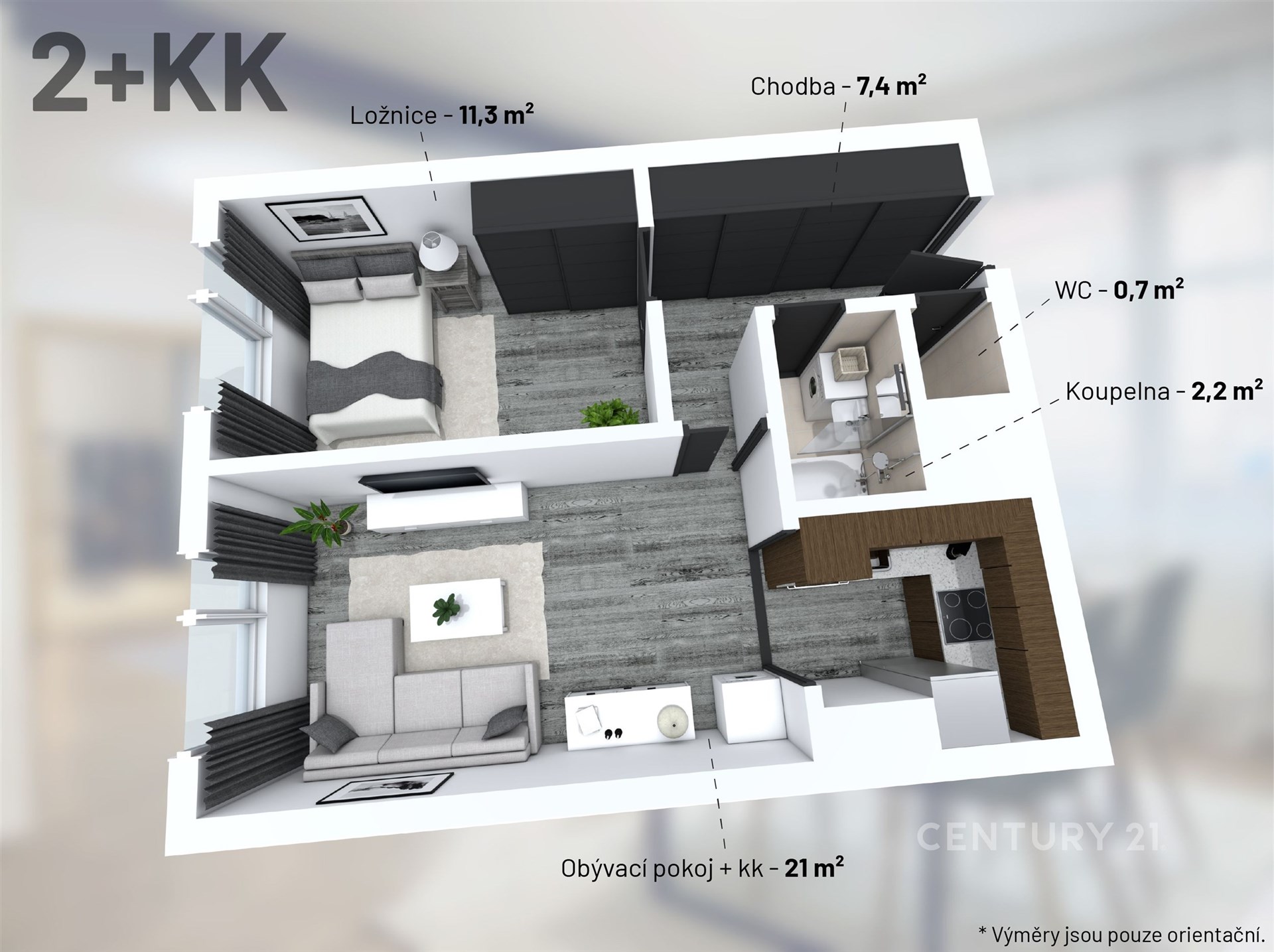 - Dispozice bytu: 2+kk