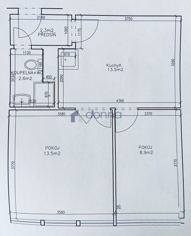 - Dispozice bytu: 2+kk