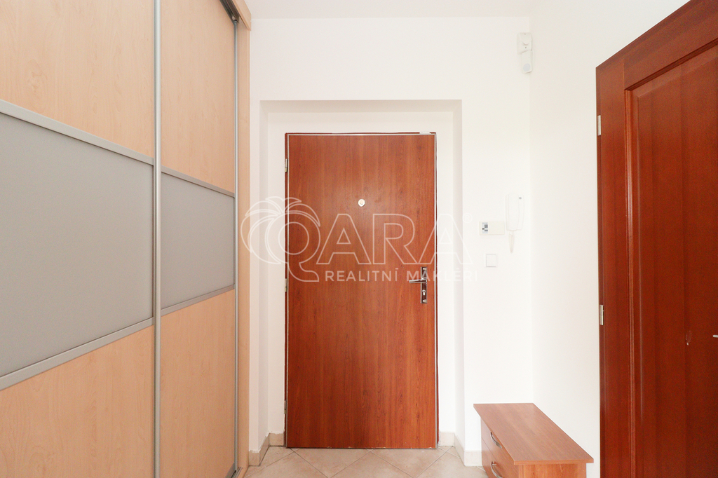 Při vstupu do bytu naleznete po pravé straně úložný prostor - prostornou šatní skříň.