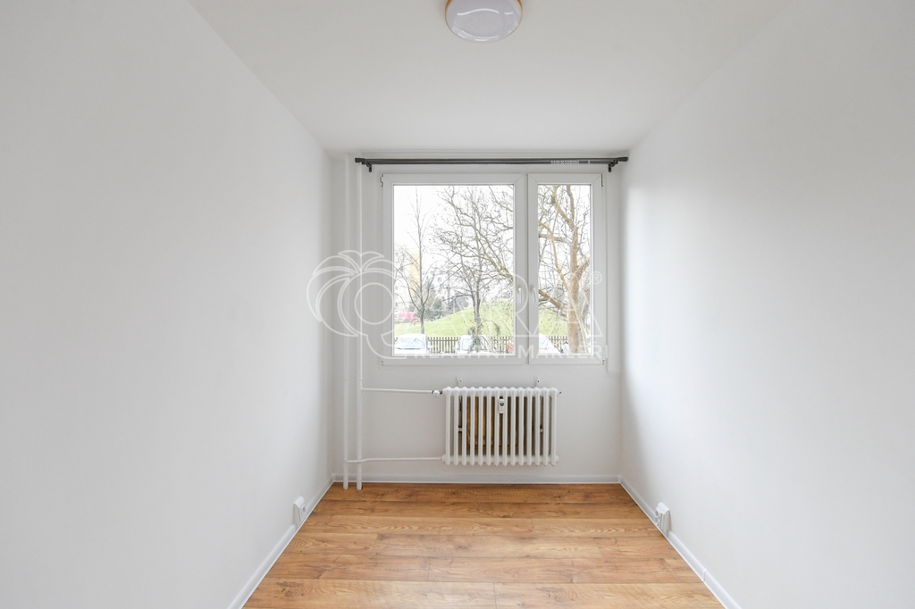Slunný byt je orientován na západ směrem do parčíku s dětským hřištěm.