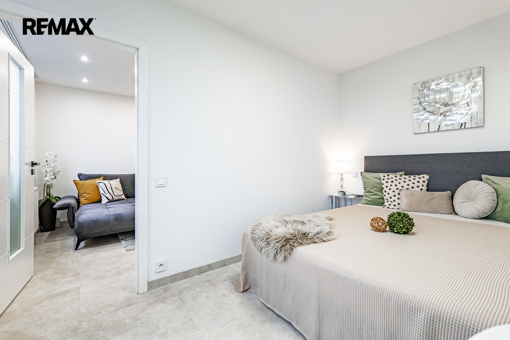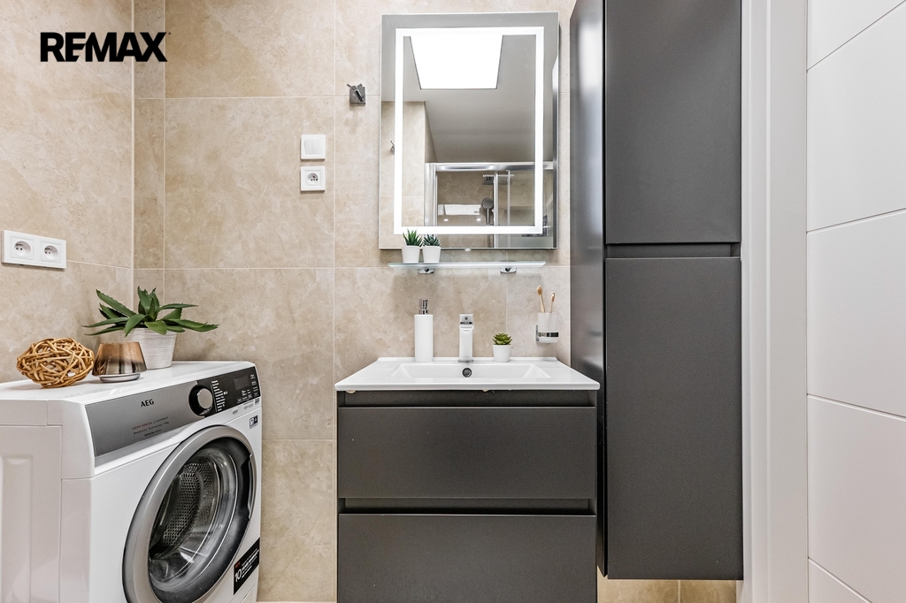 Součástí pronájmu není žádné z vybavení na fotkách. Byt bude při předání bez vybavení. V rámci pronájmu zůstávají pouze na pevno umístěné věci - vestavěné skříně, kuchyně se spotřebiči + skříňky v koupelně.