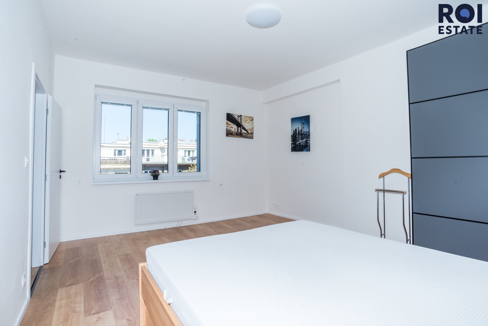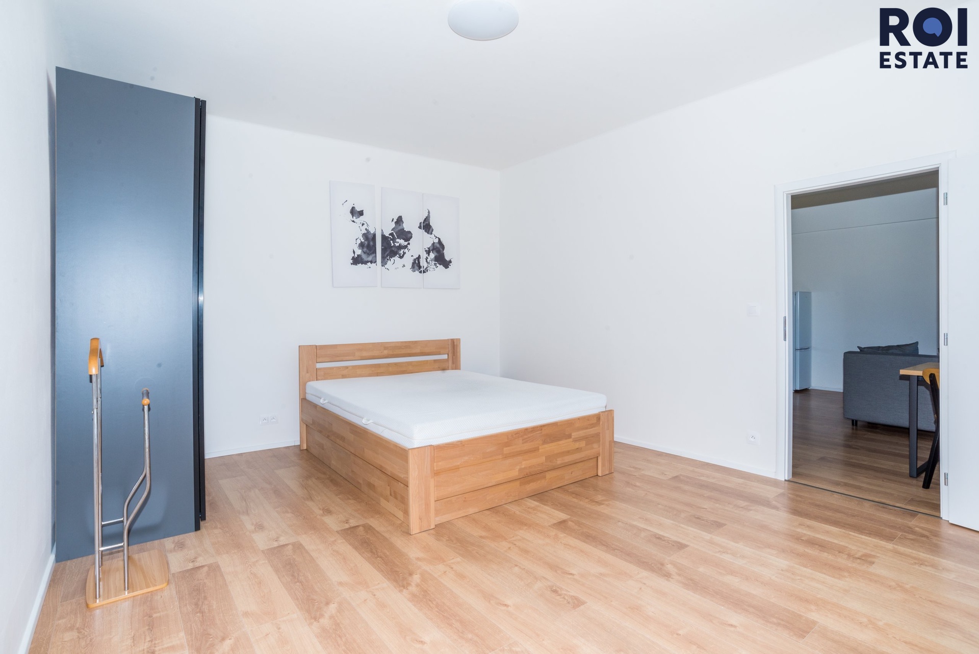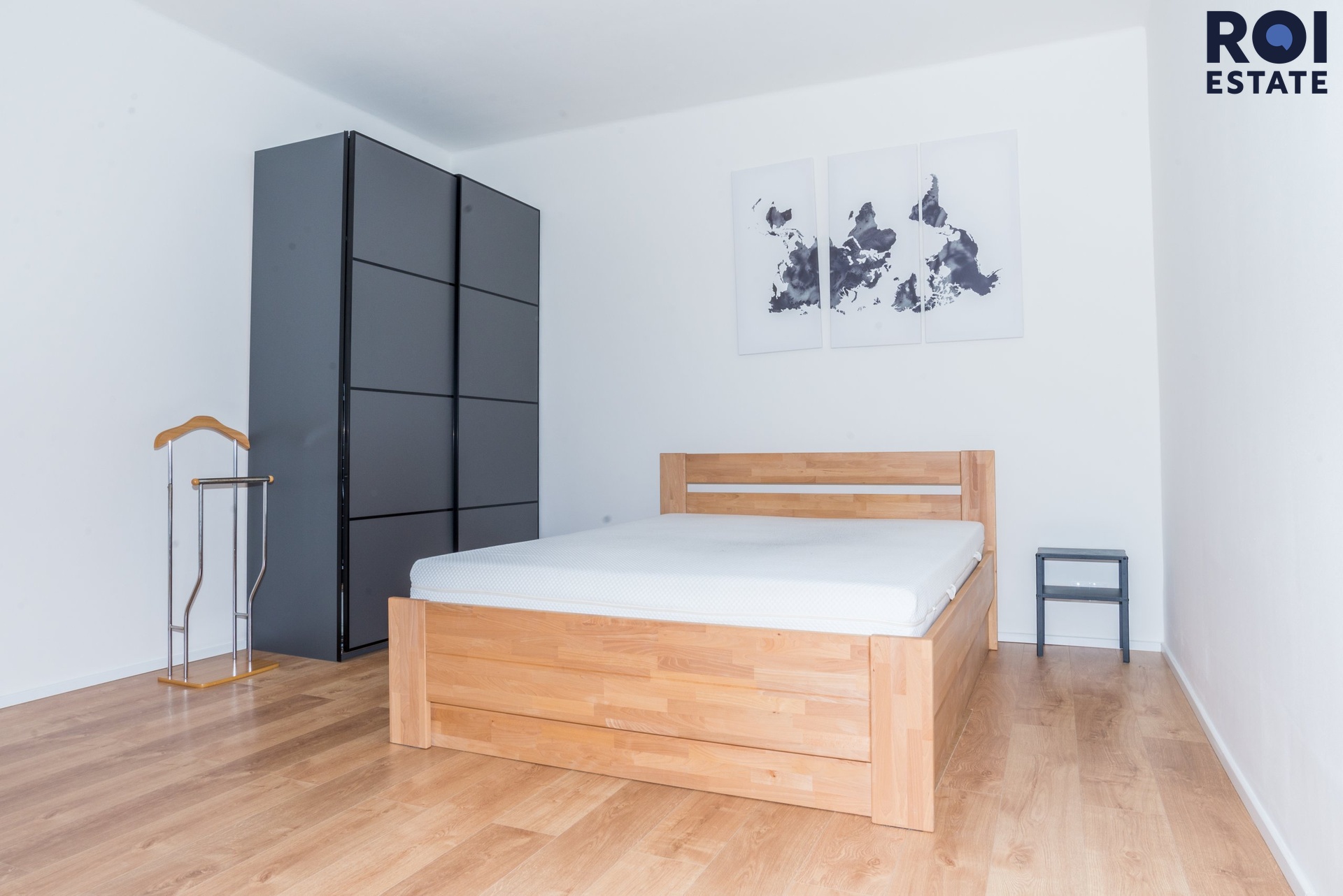 Ložnice: Připravena postel pro váš klidný spánek a prostorná skříň s dostatkem úložného místa.
