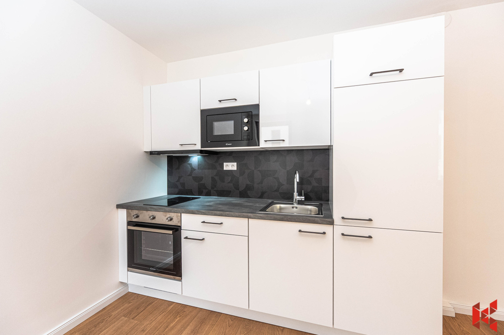 Byt vám bude naprosto vyhovovat svojí sympatickou dispozicí. Ze vstupní chodby se dostanete vpravo do koupelny se sprchovým koutem a wc, rovně pak do obývacího pokoje s kuchyňským koutem a balkónem. Z něho je vstup do ložnice. Okna jsou orientována na severozápad do klidného vnitrobloku. K bytu je k dispozici parkovací stání za 4.500,- Kč, které je v suterénu domu.