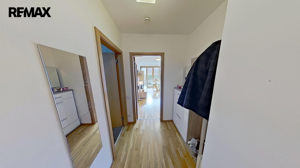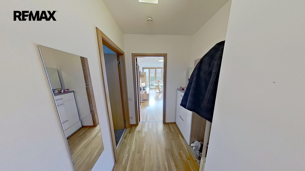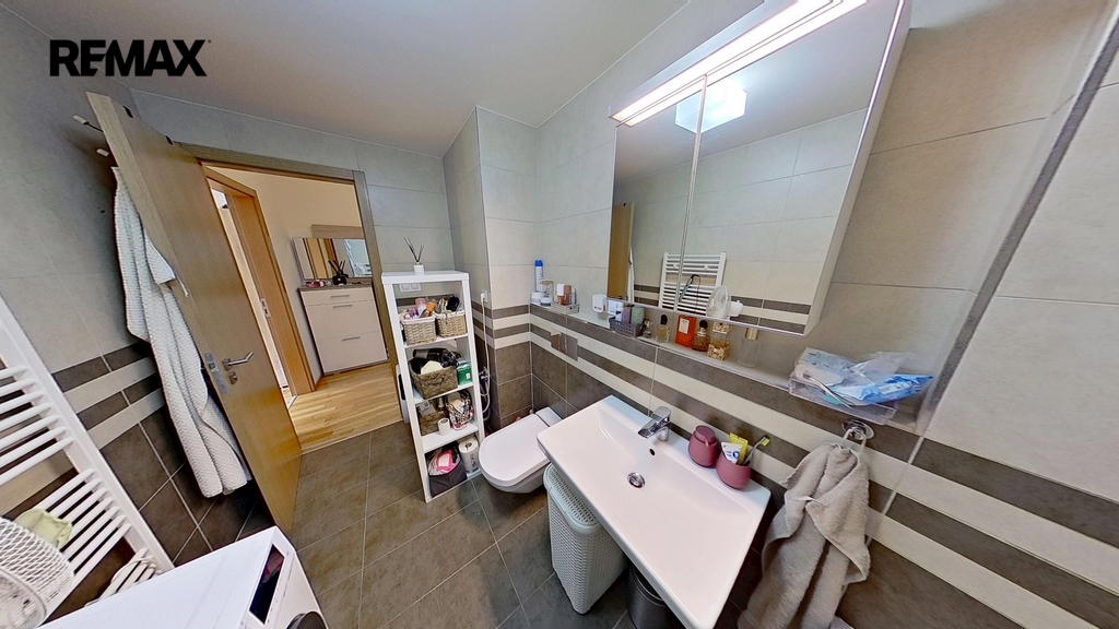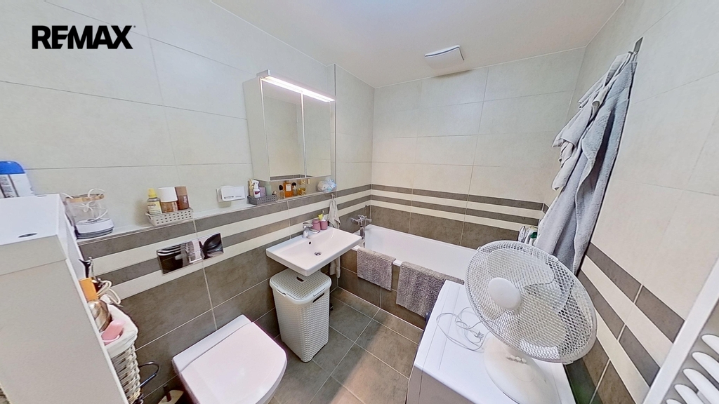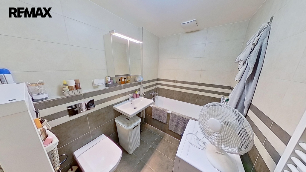 Kuchyň je vybavena kuchyňskou linkou se spotřebiči (lednice s mrazákem, indukční varná deska, trouba, mikrovlnná trouba, digestoř). Součástí bytu jsou také vestavné skříně, pračka je umístěna v předsíni. Vstupní dveře jsou bezpečnostní, vytápění je centrální.