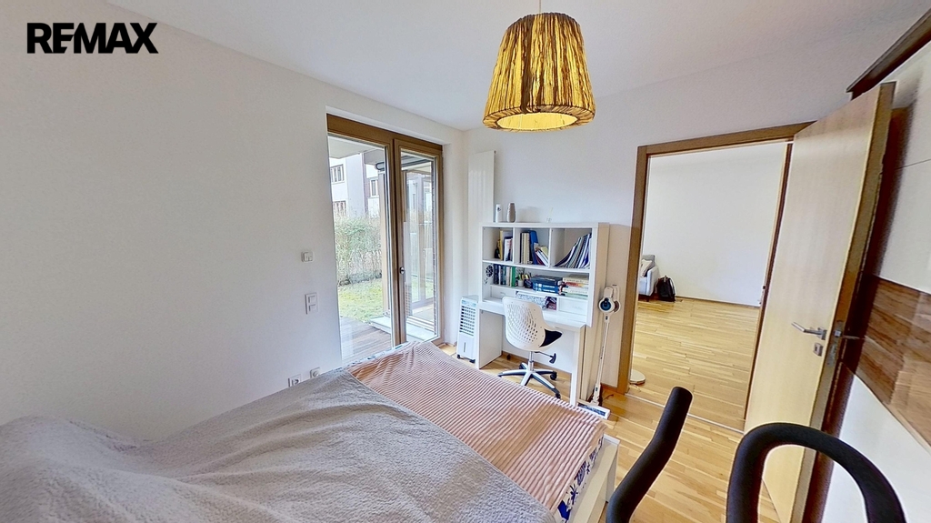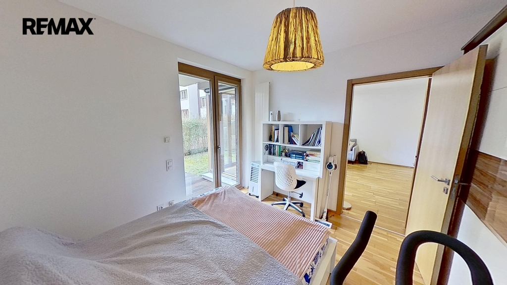 Byt se nachází v přízemí bytového domu s výtahem. Dispozici tvoří obývací pokoj s kuchyňským koutem, samostatná ložnice, koupelna s vanou, samostatné WC, předsíň s úložnými prostory a předzahrádka.