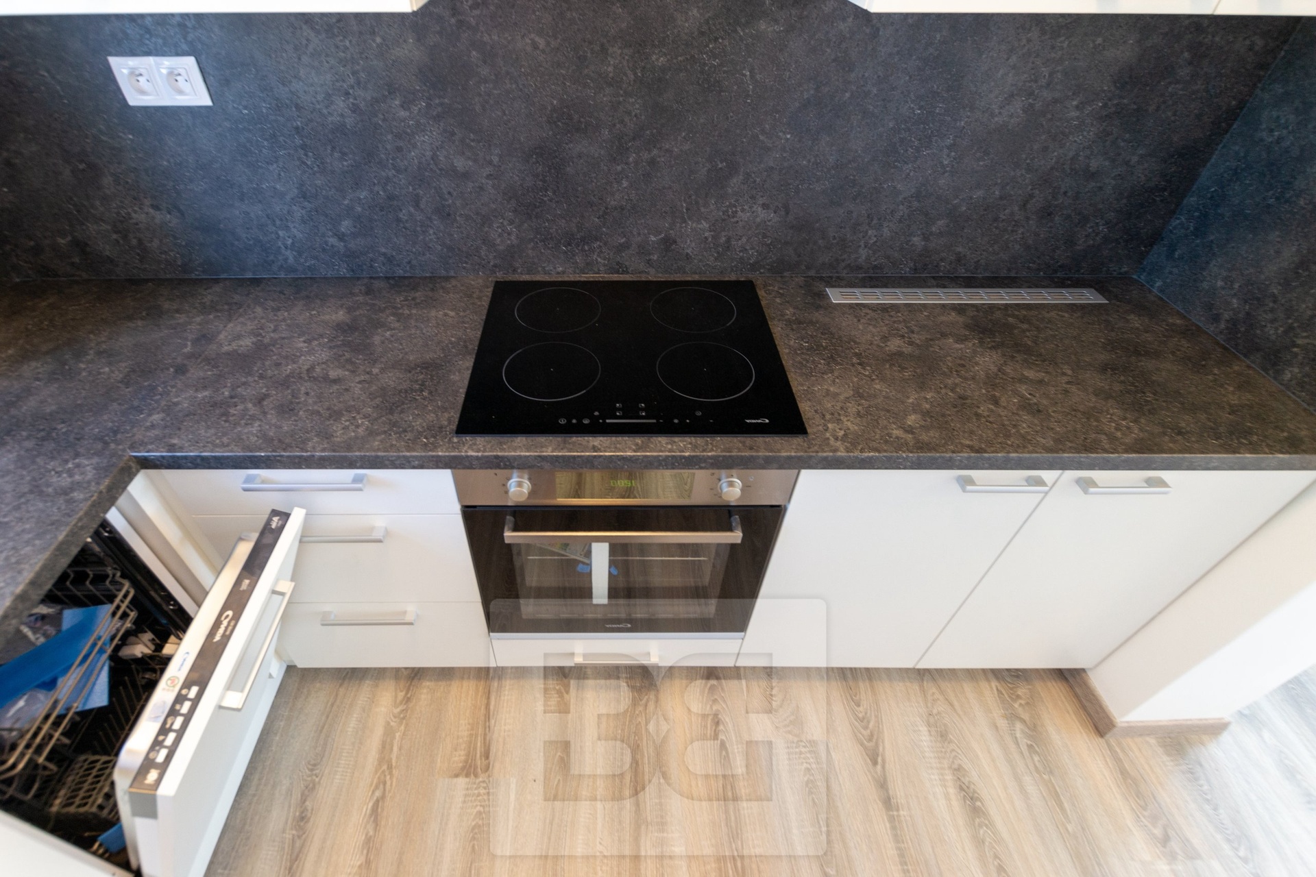 Byt tvoří obývací pokoj s plně vybavenou kuchyní, koupelna se sprchovým koutem a toaletou, vstupní chodba se šatní skříní a vstupem na balkon. Kvalitní vybavení a provedení, pračka a kuchyňské spotřebiče Candy (vč. sklokeramické varné desky, myčky a horkovzdušné trouby), lednice, vestavěny trezor. K bytu naleží vyhrazené venkovní parkovací stání.