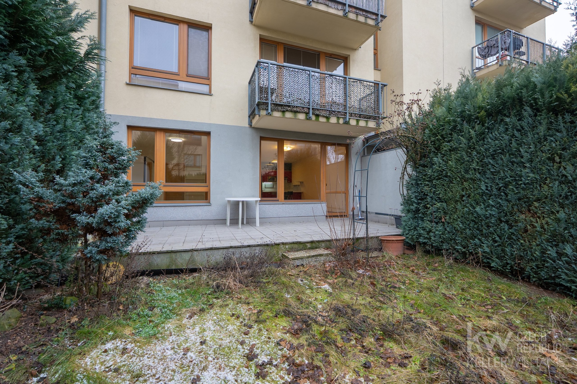 Byt je řešen jako 2+kk 50 m² v přízemí domu. Hlavní obytná místnost s kuchyňským koutem je světlá a má přímý vstup na terasu o velikosti přibližně 19 m². Na terasu navazuje soukromá zahrada o ploše cca 44 m², oddělená zelení od okolí a vhodná pro každodenní využití.