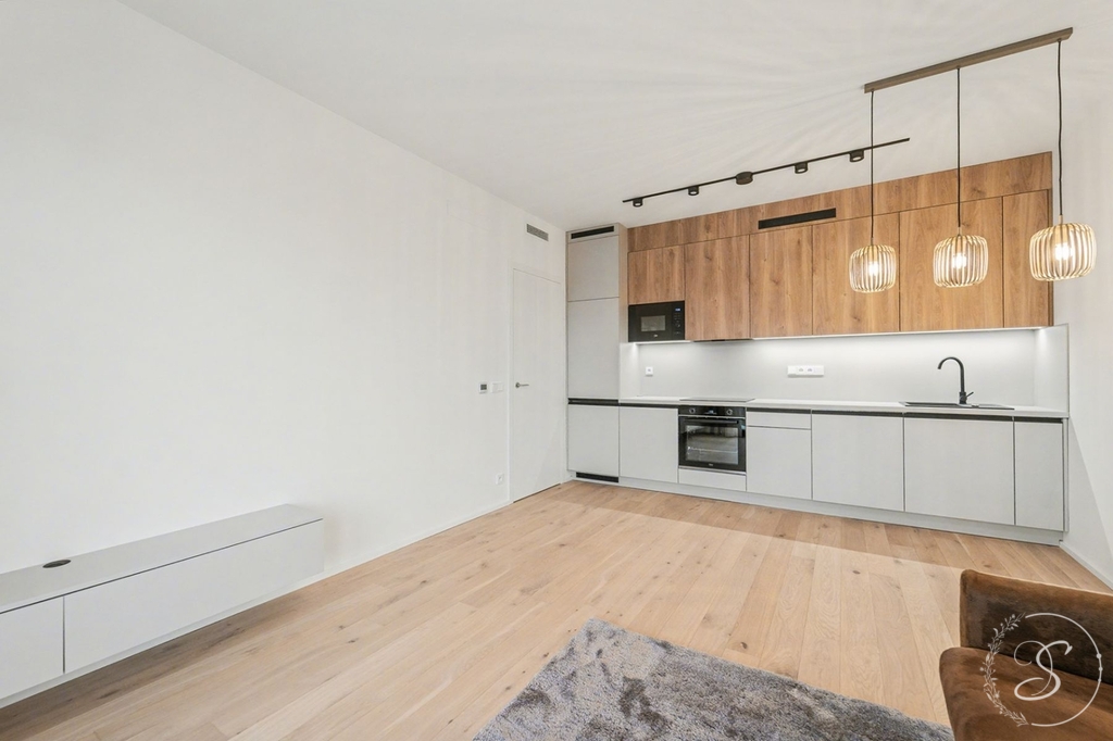 Byt se nachází v 8. podlaží rezidence, je orientován na sever a nabízí klidný výhled na panorama Prahy i okolní zeleň. Interiér je navržen s důrazem na eleganci, funkčnost a maximální komfort. Jedná se o částečně vybavený byt připravený pro prvního nájemce, s kvalitními materiály, vestavěným nábytkem a promyšlenými úložnými prostory včetně samostatné komory/šatny o velikosti 4 m². Součástí bytu je také prostorná terasa o rozloze 16 m², ideální pro soukromou relaxaci.