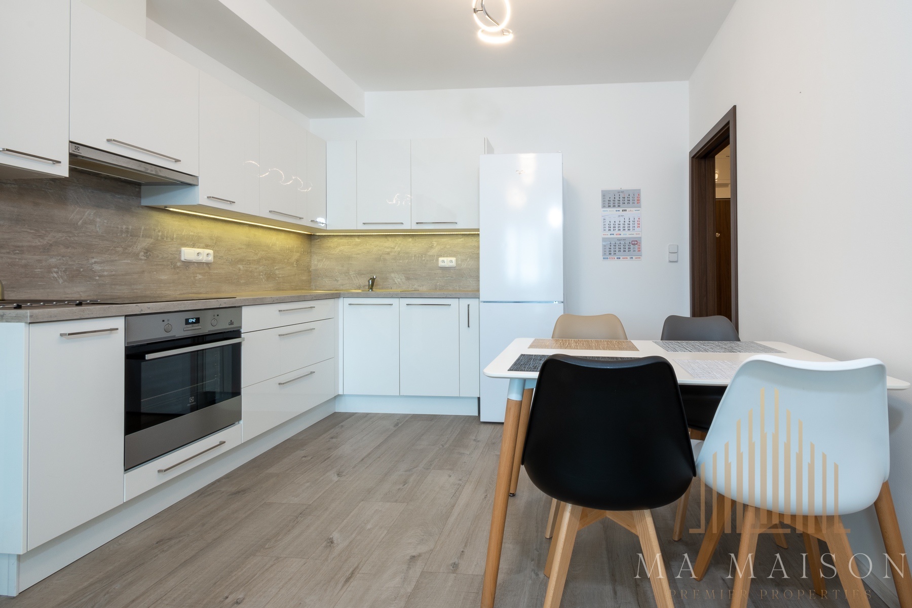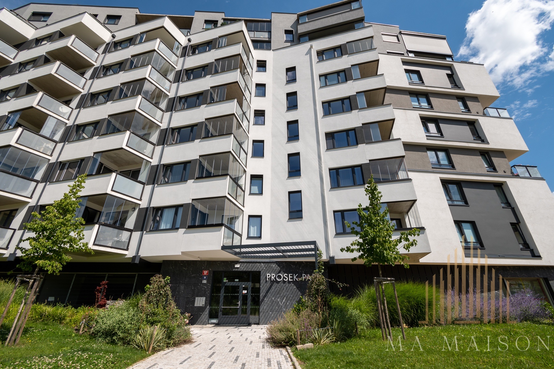 Byt se nachází v 5. nadzemním podlaží budovy a sestává: z velmi prostorné vstupní chodby s vestavěnou šatní skříní, koupelny se sprchovým koutem walk-in, toaletou s bidetovou sprškou, umyvadlem se zrcadlem a skříňkou, přípojkami na pračku a sušičku, dále z obývacího pokoje s kuchyňským koutem (plně vybaveno), z ložnice se šatní skříní. Kromě postele je byt kompletně vybaven: veškeré spotřebiče (myčka, trouba, varná deska, lednice, mrazák) včetně startovacího nádobí, jídelní stůl se židlemi, rozkládací pohovka s konferenčním stolkem, komoda pod TV. Interiérové žaluzie včetně dvouřadé garnýže, moderní osvětlení, světová orientaci na jih a východ, zasklení terasy.