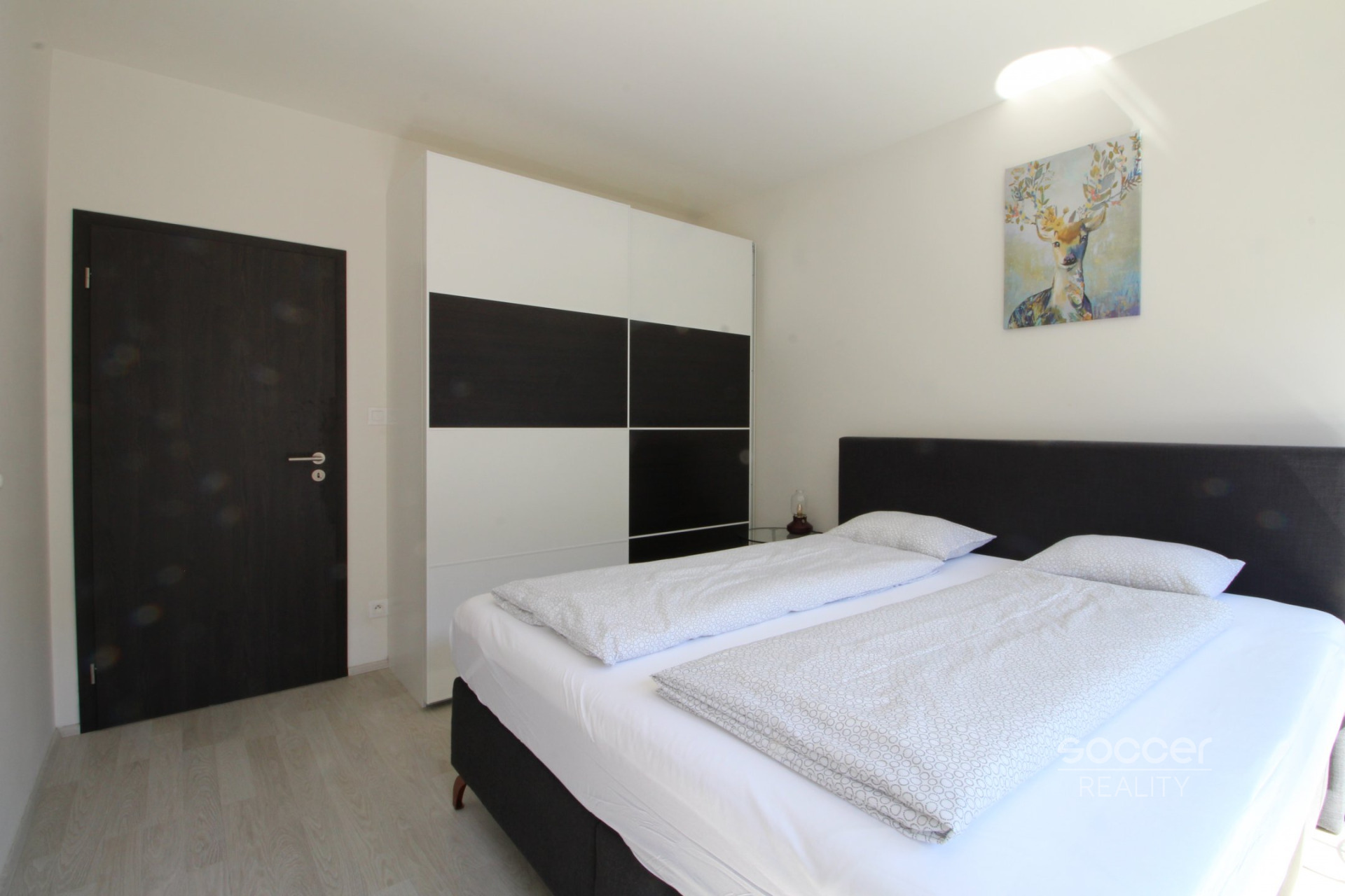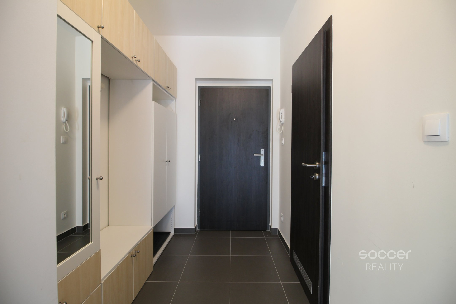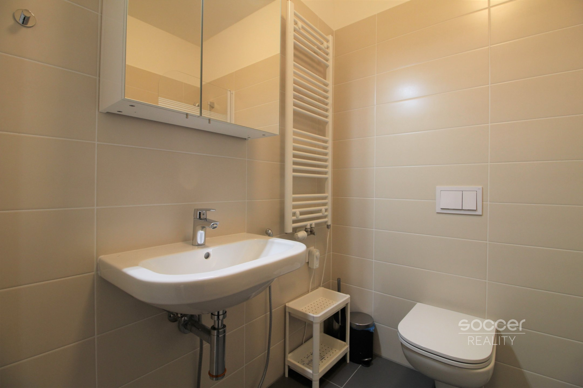Praktické uspořádání bytu zahrnuje také koupelnu vybavenou vanou a toaletou, přičemž v bytě nechybí ani pračka. Kvalitní plovoucí podlahy v obytných místnostech jsou v koupelně a předsíni doplněny elegantní dlažbou. Velkým benefitem je prostorný balkon o rozloze 8 m2, který nabízí příjemné místo pro odpočinek. K bytu náleží také praktická komora přímo v bytě a vlastní garážové stání v suterénu domu, což v této lokalitě představuje obrovskou výhodu a maximální komfort pro budoucího nájemníka.