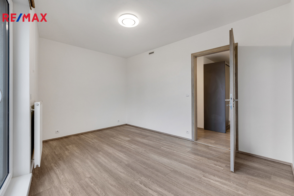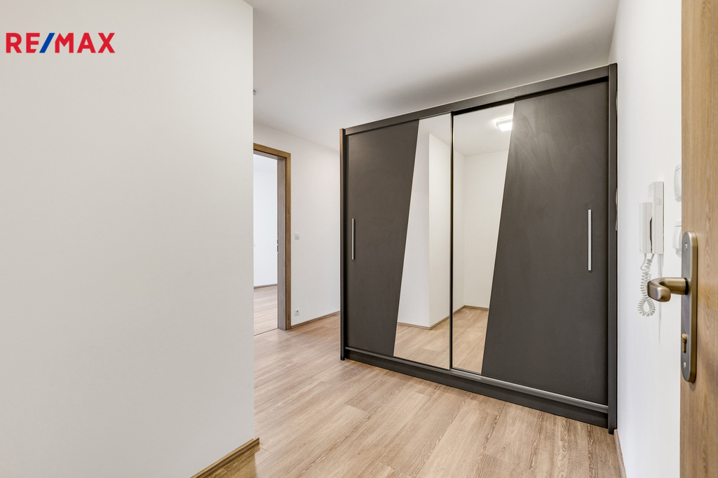 Byt se pronajímá nezařízený a nabízí praktické a funkční uspořádání. Dispozici tvoří obývací pokoj s kuchyňským koutem, samostatná ložnice, koupelna s vanou a WC a vstupní chodba s úložným prostorem. Velkou předností bytu je prostorný rohový balkon o výměře cca 16 m², který je orientovaný na východ a jih, což zajišťuje dostatek denního světla po celý den a příjemné využití venkovního prostoru.