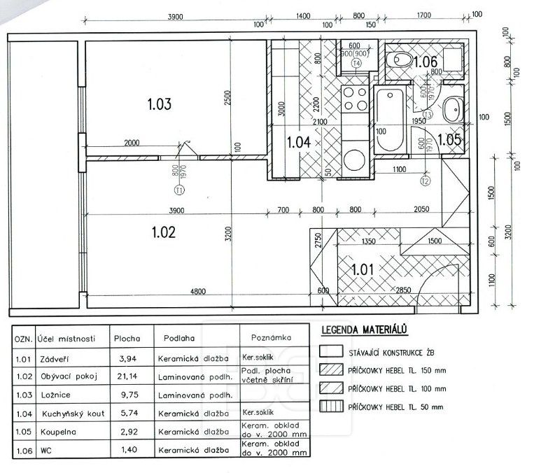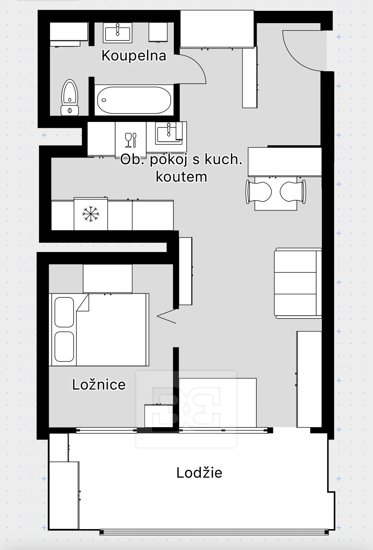 - Dispozice bytu: 2+kk