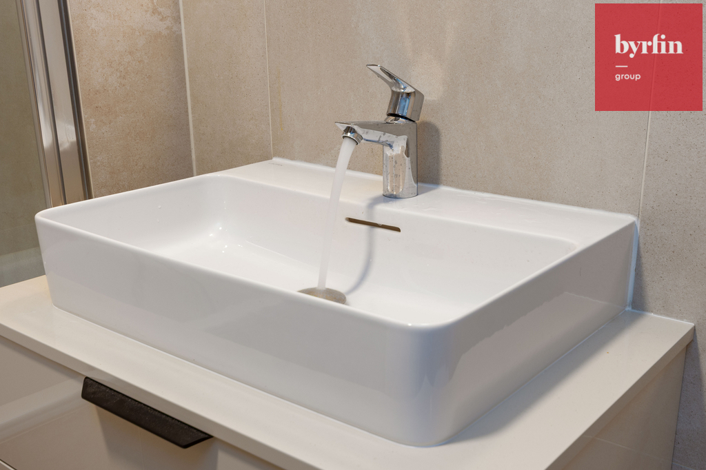 Tento krásný a útulný byt se nachází v uzavřeném areálu, který je přístupný pouze pro rezidenty. Obývací pokoj je propojen s kuch. koutem (s el. troubou, varnou deskou a myčkou nádobí), k vybavení patří lednička s mrazákem. Dominantu tvoří pohodlné schodiště, kterým se vchází do druhého podlaží bytu, kde je umístěna ložnice, šatní skříň. V 1. podlaží bytu při vstupu do bytu se nachází také velká koupelna se sprchovým koutem a WC, je zde prostor a přípojka na pračku, sušičku.Vytápění je centrální, v bytě je klimatizace. Tento byt se právě připravuje pro prvního nájemníka.