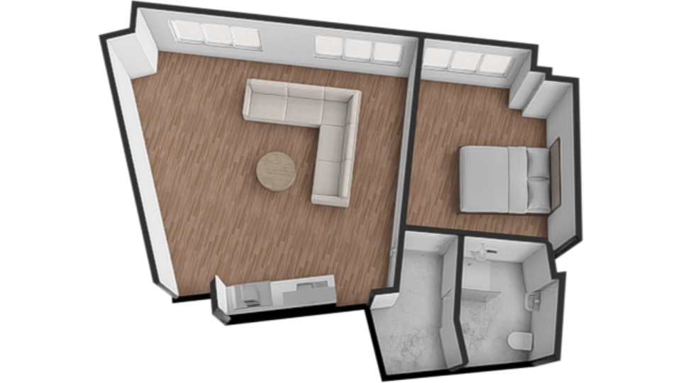 | Dispozice/podlahová plocha: | 2+kk/58 m² |