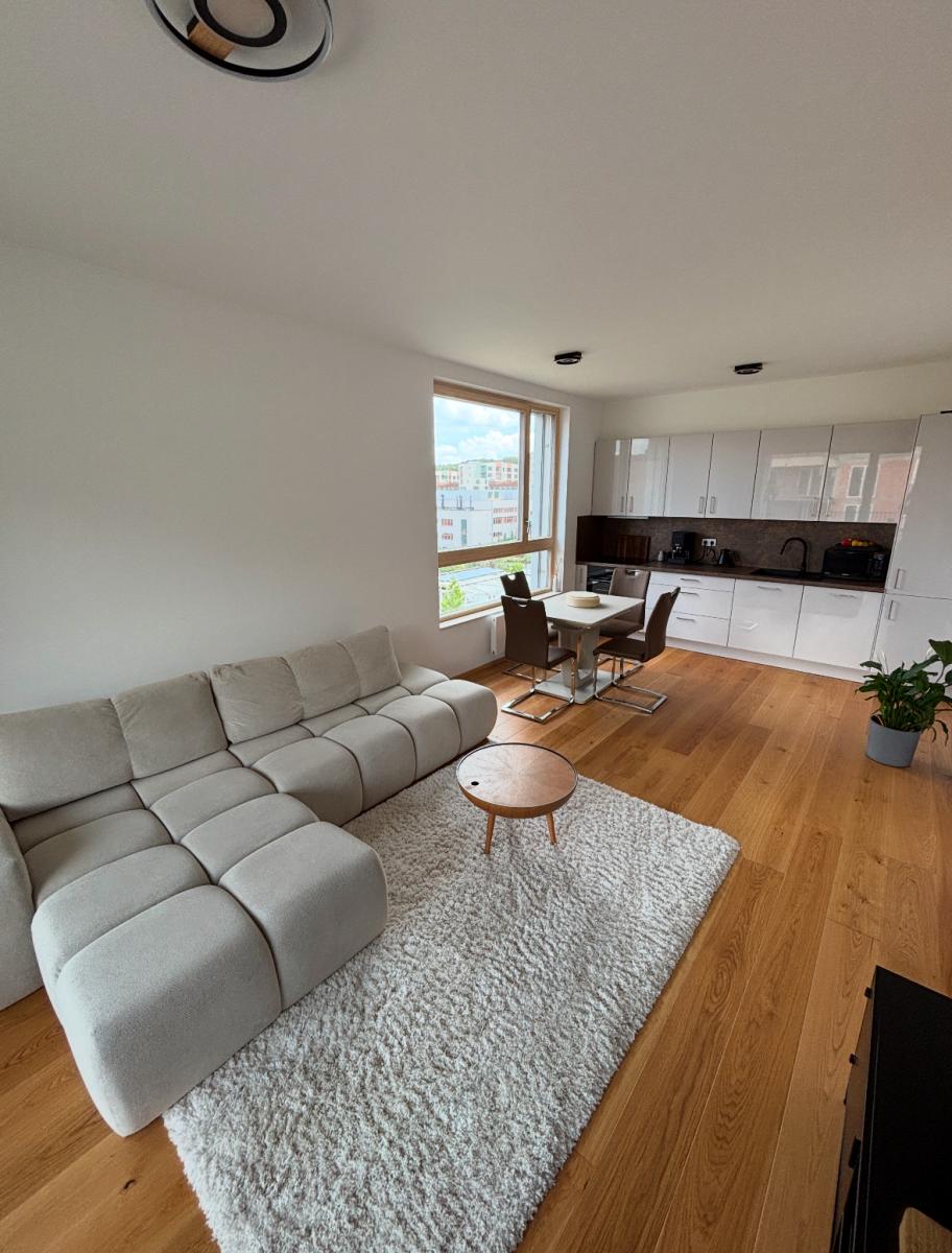 K pronájmu nabízím moderní, stylově zařízený byt 2+kk o ploše 59 m s útulnou lodžií (6,5 m), umístěný ve 4. podlaží prestižního projektu Nová Waltrovka na ulici Vladimíra Kobranova, Praha 5 Jinonice.