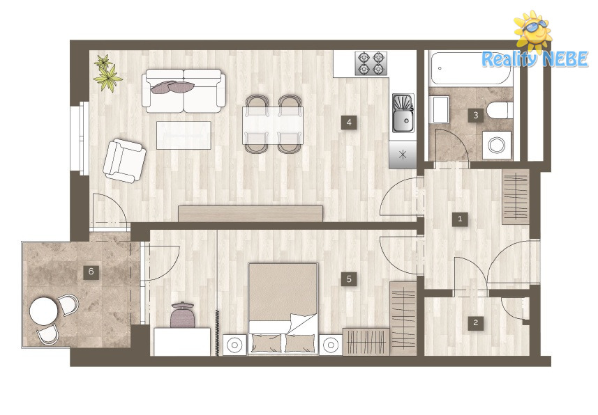 - Dispozice bytu: 2+kk