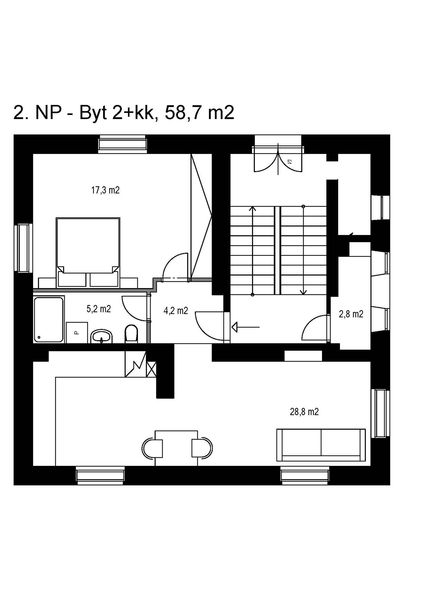 - Dispozice bytu: 2+kk