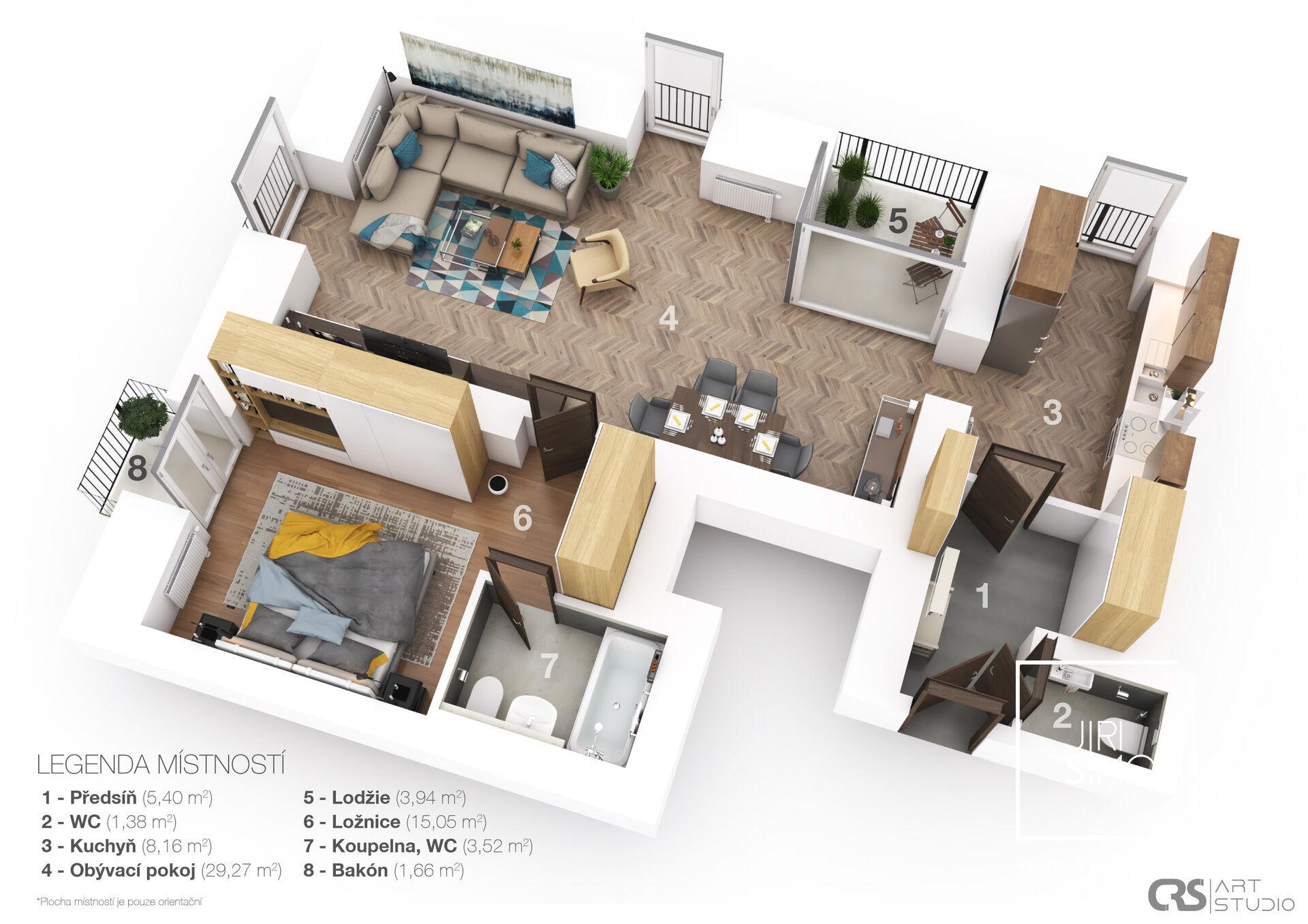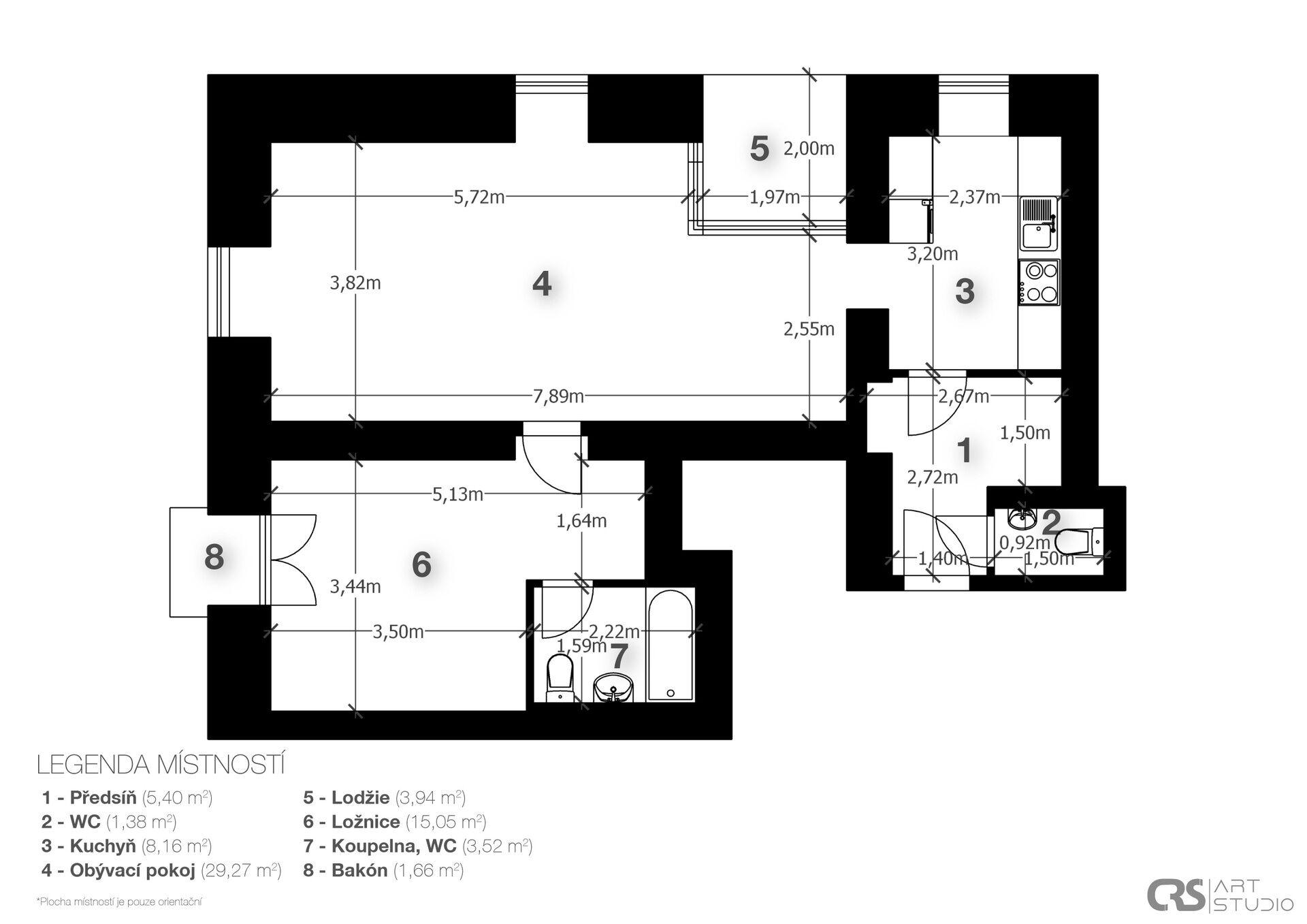 - Dispozice bytu: 2+kk