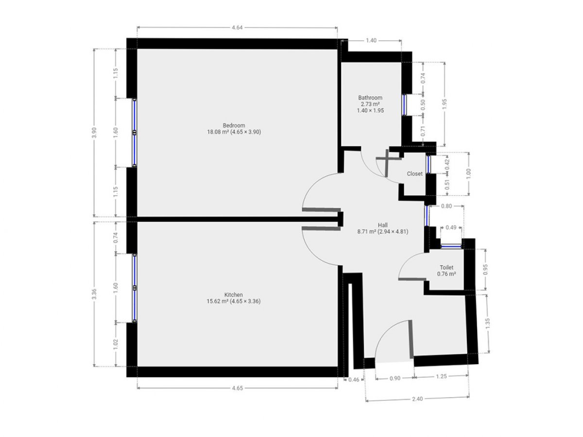 - Celková podlahová plocha: 49 m²