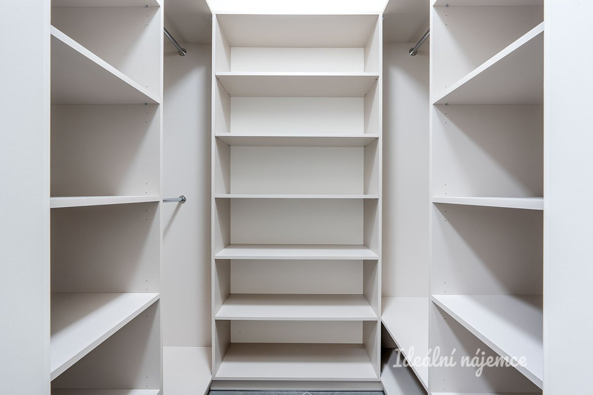Kuchyňská linka je vybavena spotřebiči (myčka, elektrická trouba, indukční varná deska, mikrovlnná trouba, digestoř). Obývací část i ložnice jsou bez nábytku. V koupelně se nachází sprchový kout, umyvadlo se zrcadlem a WC. Součástí bytu je samostatná šatna s policovým systémem, která efektivně řeší úložné prostory.