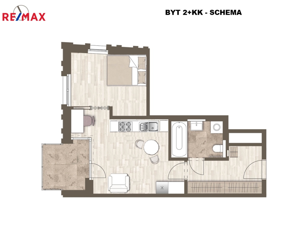| Dispozice/podlahová plocha: | 2+kk/42 m² |