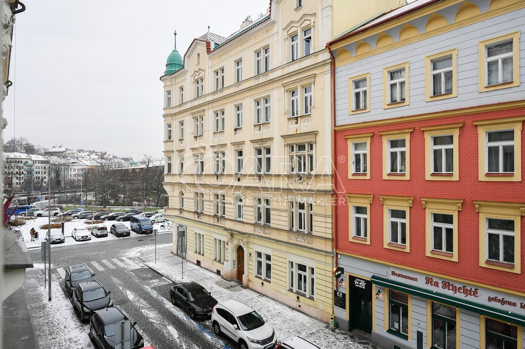Exkluzivní nabídka pronájmu bytu 2+kk (44m2) ve druhém patře cihlového domu bez výtahu v šiřším centru Prahy, kousek od Výtoně, náplavky či Karlova náměstí. Byt na adrese Oldřichova 4 je zařízen pouze kuchyňskou linkou, na mezipatře je k dispozici balkon pouze k tomuto bytu. Ložnice je orientovaná do klidného vnitrobloku, obývací pokoj k kuchyňským koutem do ulice Oldřichova.