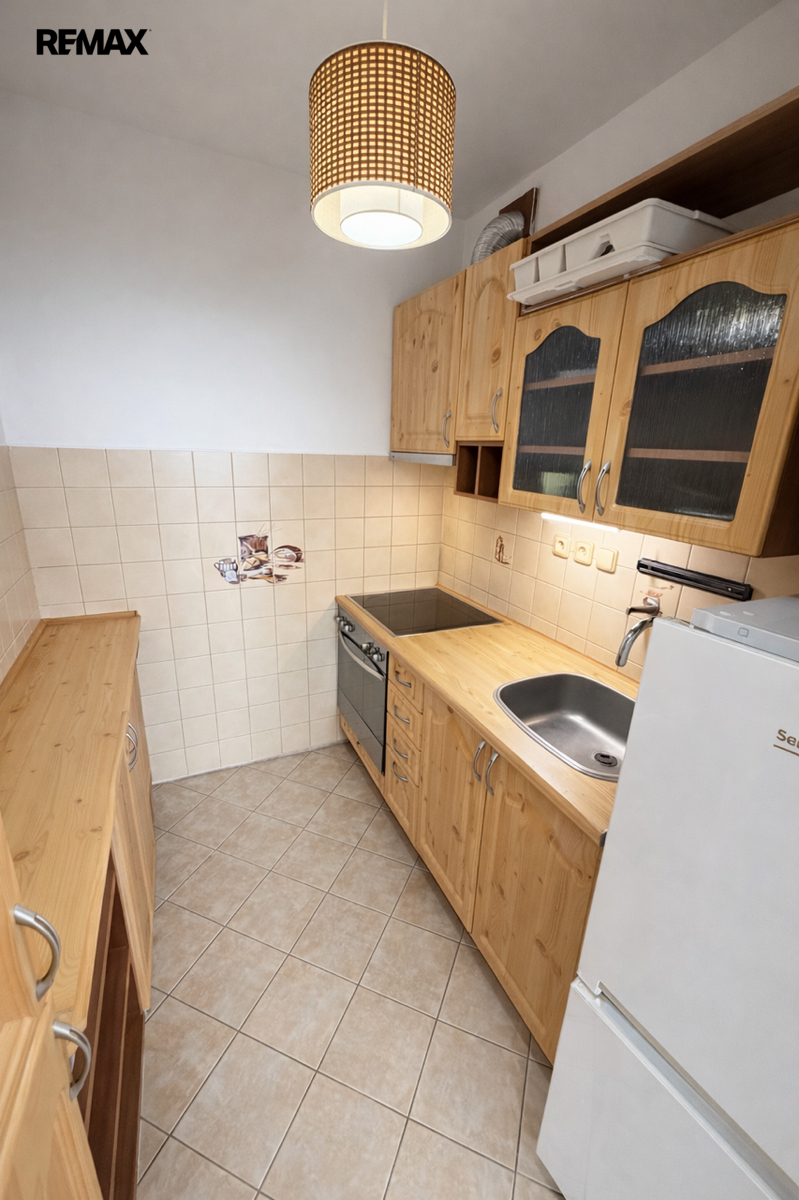 Vybavení: Byt se nabízí vybavený kuchyňskou linkou včetně spotřebičů a vestavěnou skříní v předsíni, což zajišťuje pohodlné a praktické bydlení.