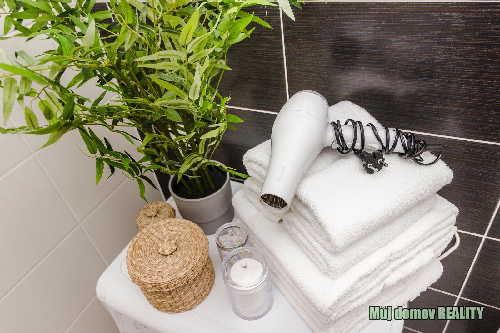 Byt je kompletně vybavený a připravený k okamžitému užívání. K dispozici je kuchyňská linka se spotřebiči, myčka nádobí, pračka, lednice, mikrovlnná trouba, trouba, vysavač a další běžné vybavení domácnosti. Stačí se pouze nastěhovat.