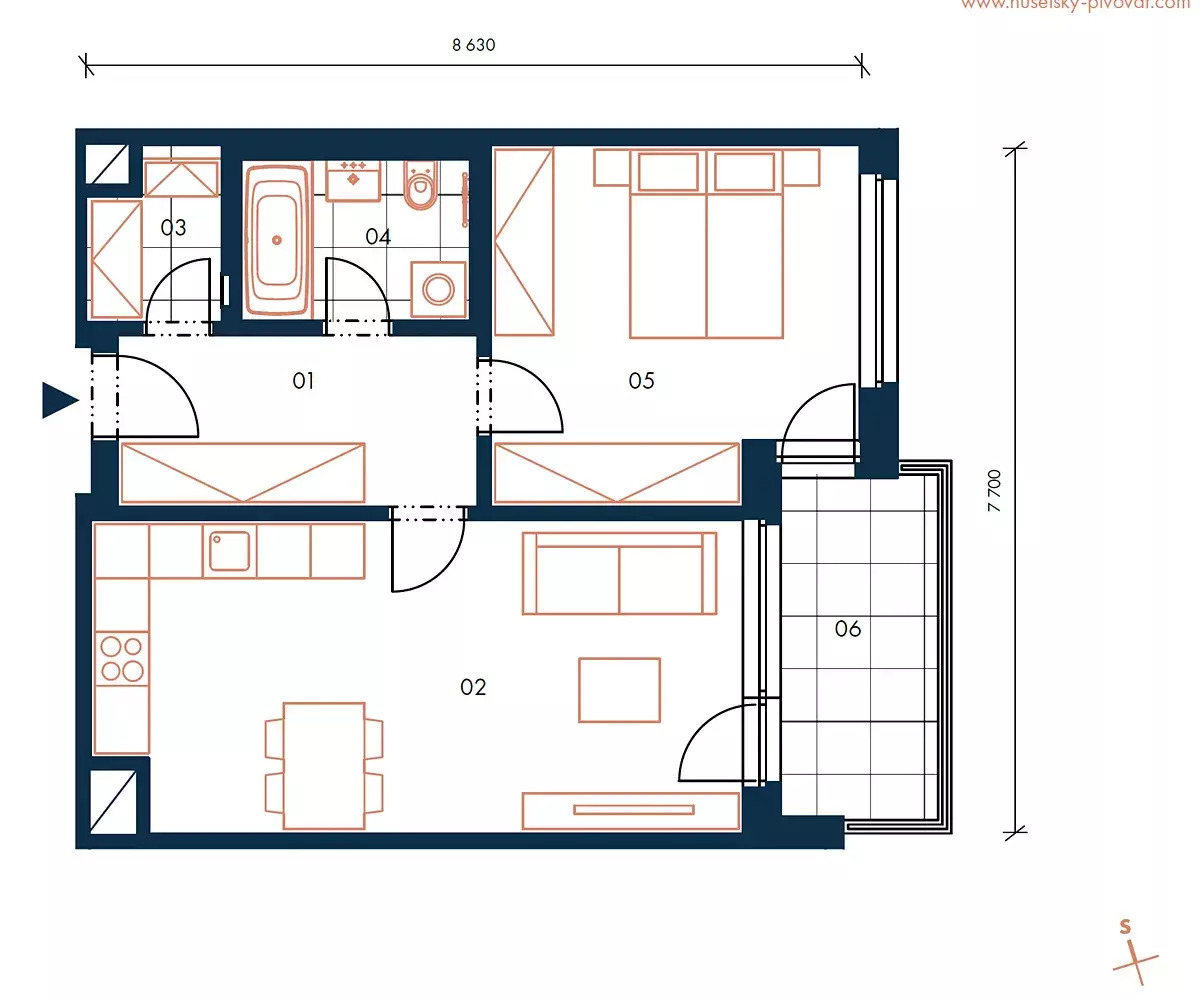 | Dispozice/podlahová plocha: | 2+kk/56 m² |