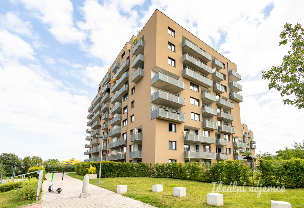 K dlouhodobému podnájmu nabízíme krásný byt o dispozici 2+kk v rezidenčním projektu Tulipa Třebešín v klidné nové čtvrti v Praze 3 - Strašnice. Byt o celkové výměře 68 m2 se nachází v 7. nadzemním podlaží moderního domu z r. 2016 s výtahem. Byt sestává z předsíně, obývacího pokoje s kuchyňským koutem, ložnice, koupelny, samostatného WC a balkonu. K bytu patří též garážové stání a kočárkárna (zahrnuto v ceně).