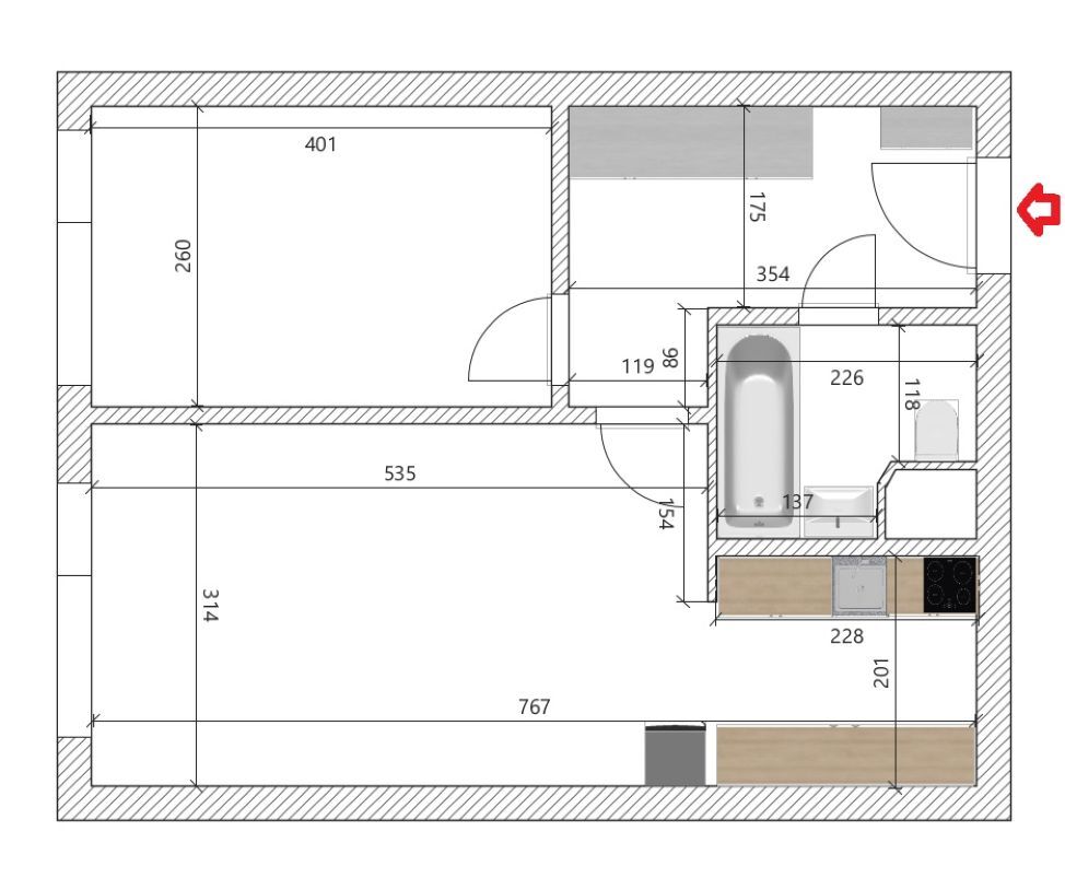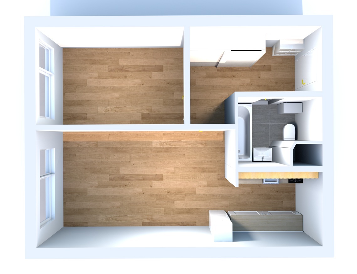 | Dispozice/podlahová plocha: | 2+kk/43 m² |