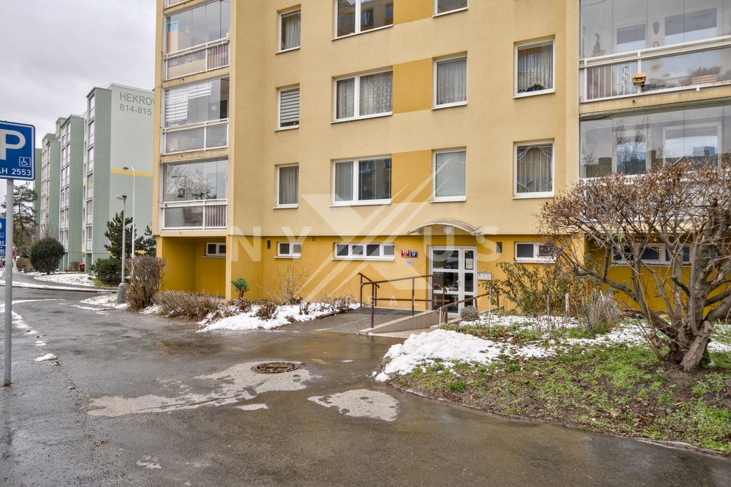 K pronájmu nabízíme světlý byt 3+1 o podlahové ploše 52 m2 + balkón 4,5 m2, který se nachází v 6. podlaží domu v ulici Hekrova 17, Praha 4, Háje.