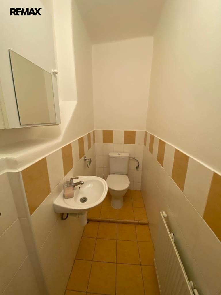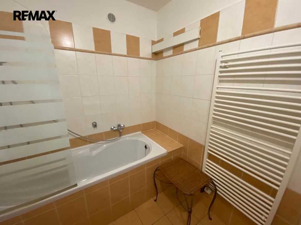 Koupelna a zázemí: Koupelna disponuje vanou, toaleta je umístěna samostatně.