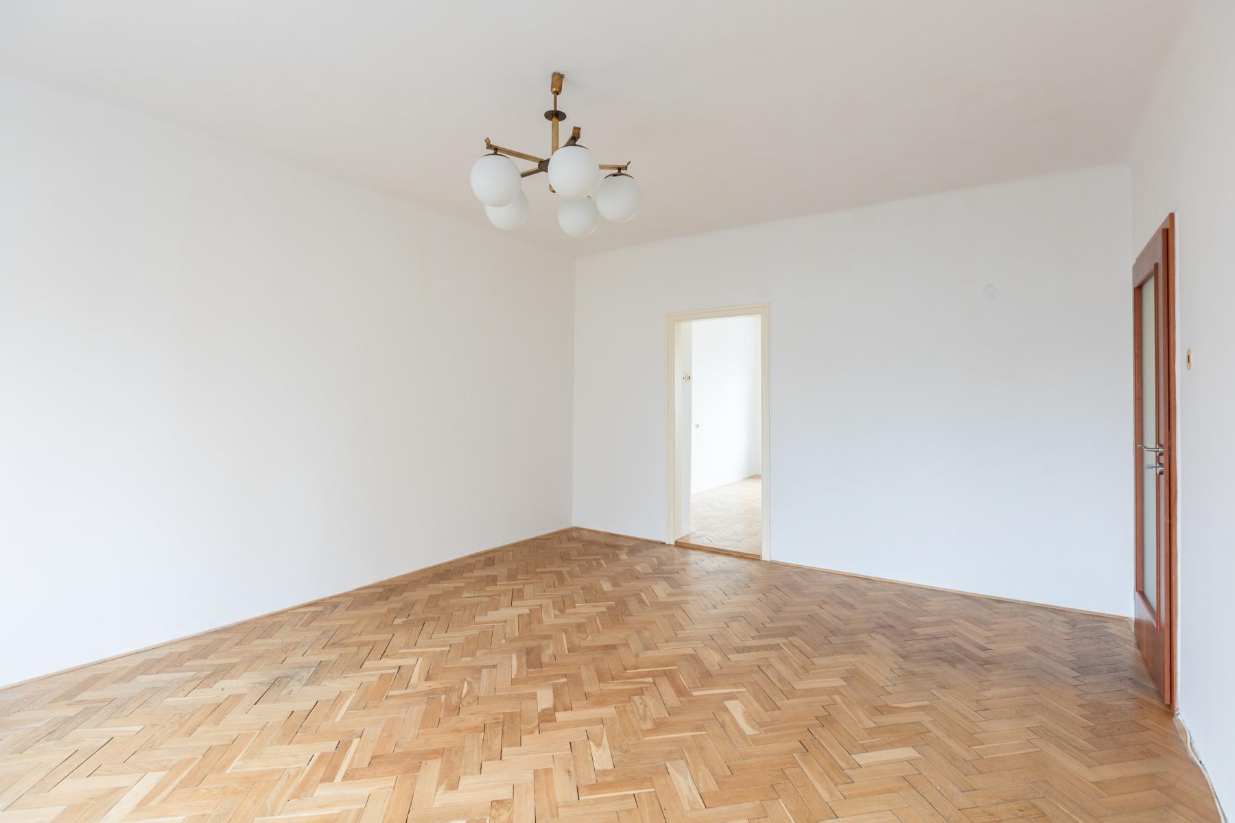 Byt disponuje velkým obývacím pokojem, dvěma ložnicemi, kuchyní, koupelnou, samostatnou toaletou a prostornou předsíní s velkými vestavěnými skříněmi. Velká okna zajišťují dostatek denního světla a z bytu je příjemný výhled do zeleně. Na podlahách jsou zachovalé dřevěné parkety, které dodávají interiéru příjemnou atmosféru. Kuchyň v udržovaném původním stavu, k dispozici špajz pro skladování potravin i lednice s mrazákem. Pračka je součástí vybavení bytu.