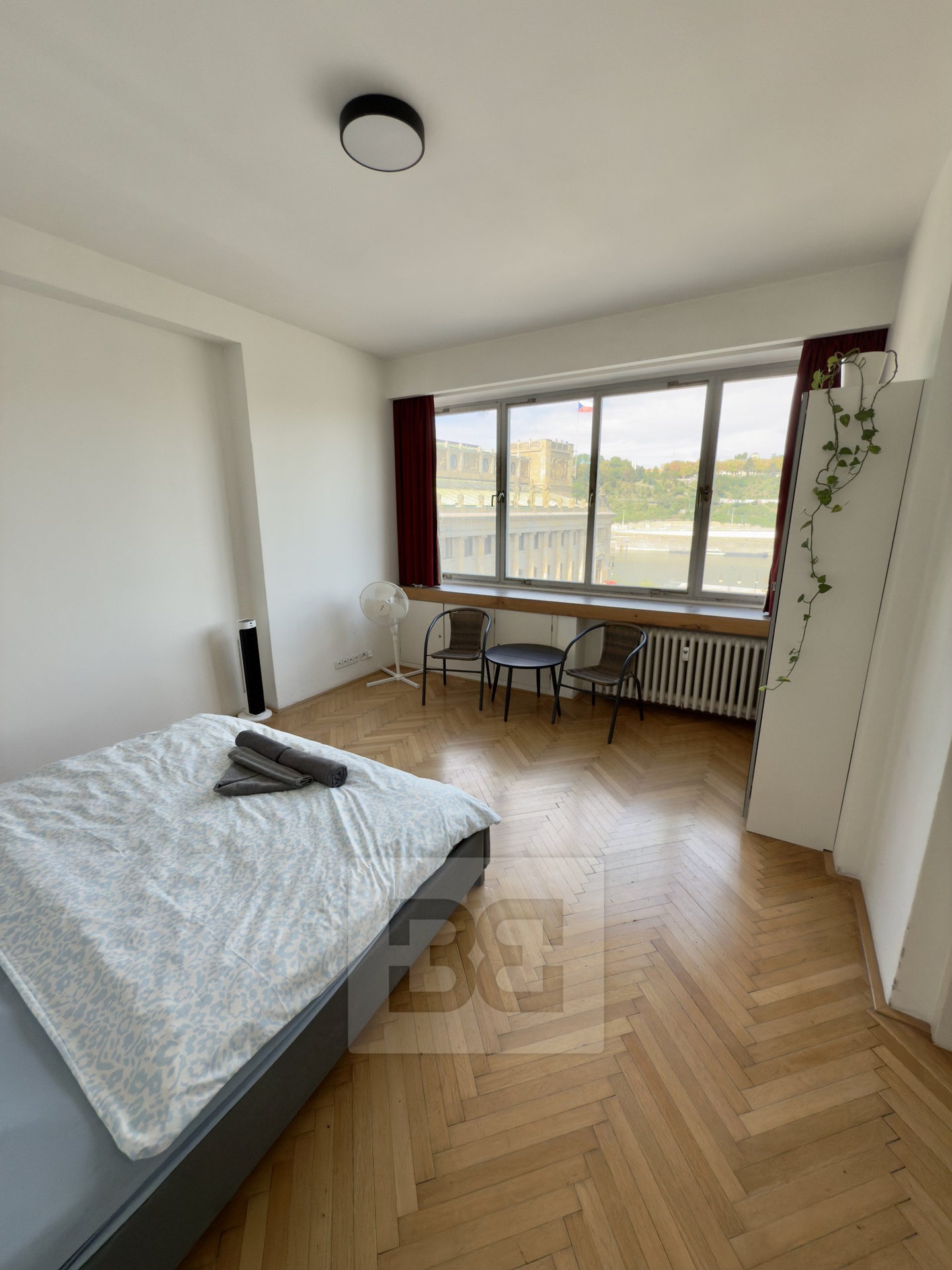 Nabízíme Vám k pronájmu byt 3+1 s obytnou plochou 82 m², situovaný v 5.NP domu s výtahem, v ulici Revoluční. Byt se sestává ze vstupní chodby, koupelny se sprchovým koutem a toaletou, kuchyně vybavené varnou deskou, mikrovlnou troubou, myčkou nádobí a lednicí s mrazákem, obývacího pokoje, ložnice, ke které přiléhá druhá koupelna se sprchovým koutem, toaletou a bidetem a druhého pokoje. Výhled z oken pokojů na řeku Vltavu.