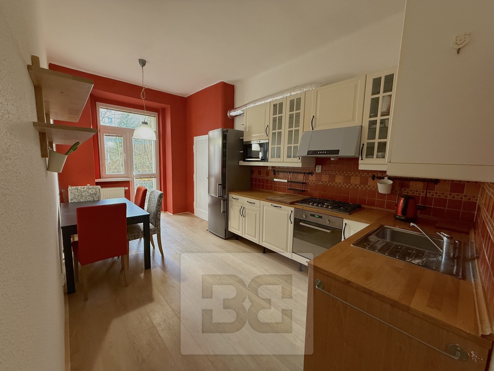 • Kuchyňská linka je vybavena spotřebiči (lednicí, elektrickou troubou. digestoří, myčkou, varnou deskou)