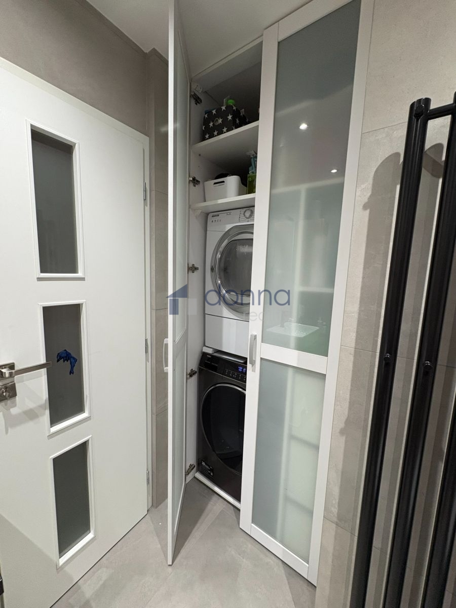 Koupelna prošla nedávnou rekonstrukcí a nabízí moderní sprchový kout, toaletu, pračku i sušičku.
