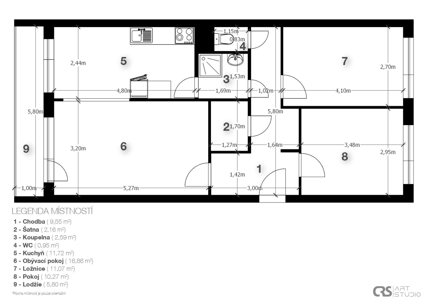 | Dispozice/podlahová plocha: | 3+1/69 m² |