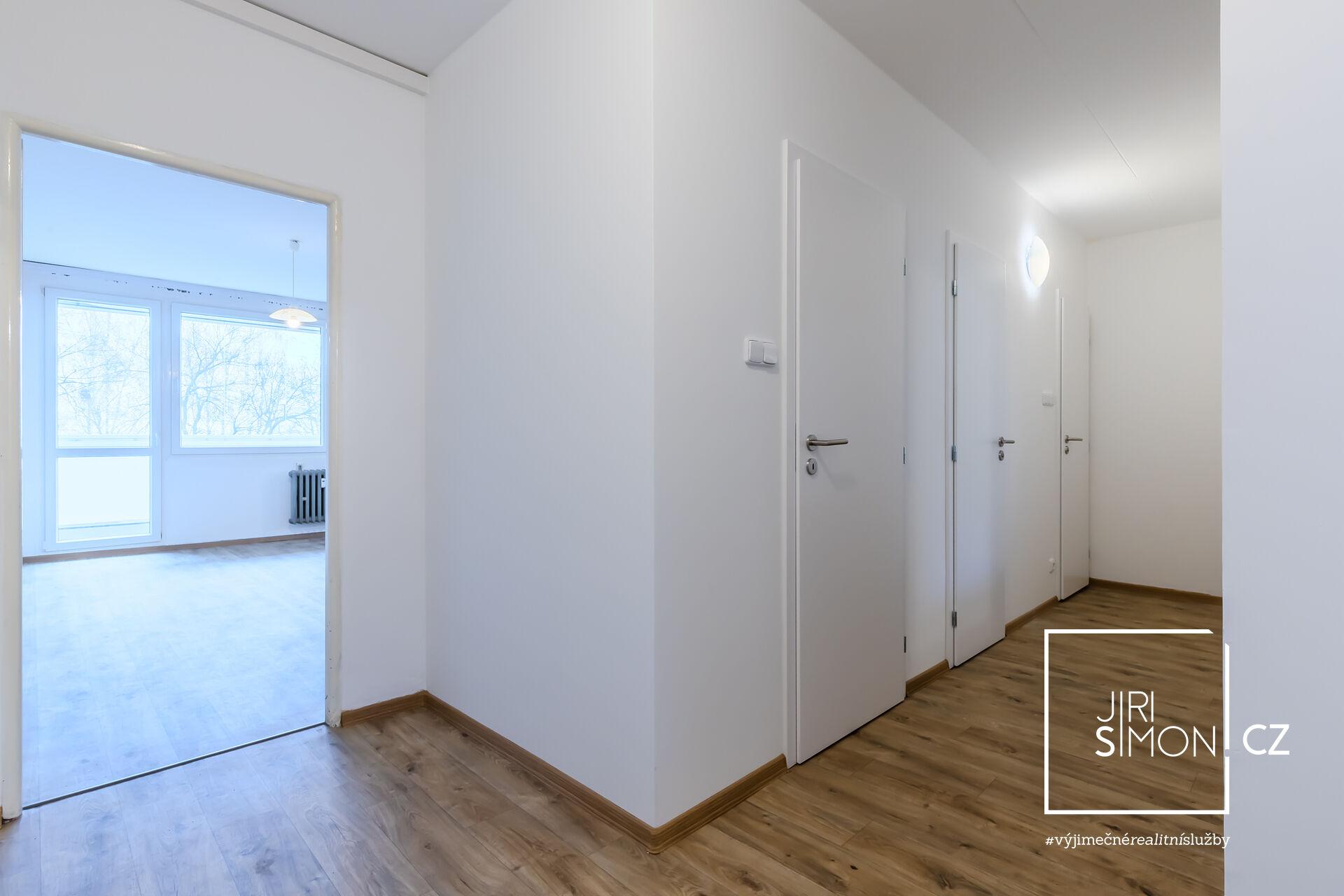 Byt má prakticky řešenou dispozici: obývací pokoj propojený s velkou kuchyní, dvě samostatné ložnice, koupelnu, samostatné wc, komoru v bytě, předsíň a komoru na chodbě před bytem. Největší předností je, že byt prošel rekonstrukcí a je ve velmi dobrém stavu.