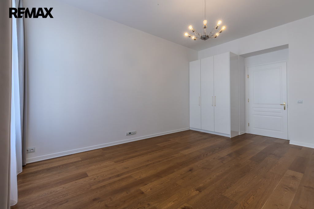 Interier bytu tvoří prostorný obývací pokoj s plně vybavenou kuchyňskou linkou, dvě samostatné ložnice, vstupní hala, dvě koupelny s toaletami, jedna se sprchovým koutem a druhá s vanou. Náleží k němu technická komora, sklep a balkon s výhledem do zeleně vnitrobloku. Vybavení a zřizovací předměty jsou ve vysoké kvalitě: designová kuchyň, dřevěné podlahy, bezpečnostní vstupní dveře, francouzská okna apod. Vytápění je v domě řešeno centrálně. Elektroměr bude převeden na budoucího nájemníka. Měsíční nájemné je 45 000,- Kč a zúčtovatelné měsíční zálohy na služby jsou cca 7000,- Kč. Kauce na zařízení a vybavení bytu činní 80 000,- Kč. Poptávající klient je srozuměn s úhradou provize pro realitní kancelář ve výši jednoho měsíčního nájmu plus DPH. Pro další informace nebo sjednání termínu prohlídky prosím kontaktujte níže uvedeného makléře nabídky. Pronajímající si vyhrazuje právo vybrat nájemce na základě jím zvolených kritérií.