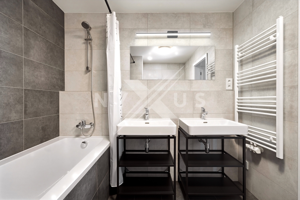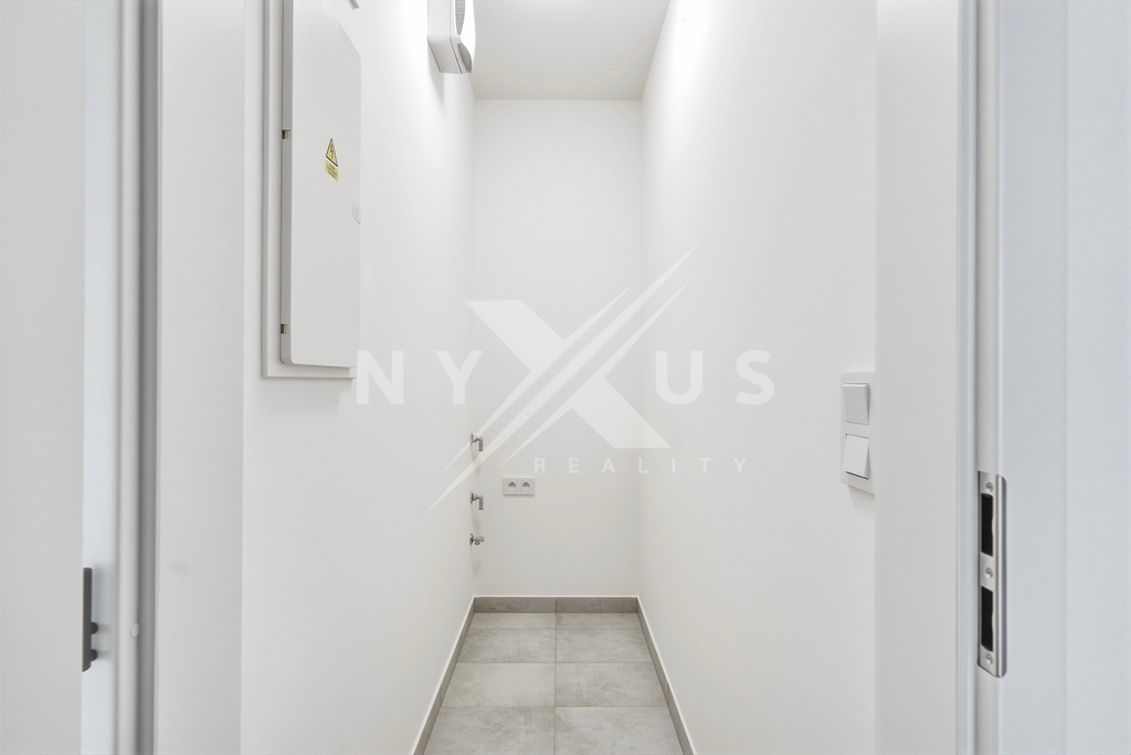 V bytě je podlahové vytápění v koupelně a na chodbě, které zvyšuje komfort bydlení. Součástí je také příprava pro instalaci klimatizace a venkovních žaluzií, což umožňuje další úpravy dle potřeb nájemníka. K bytu náleží velkorysý sklep a garážové stání v domě.