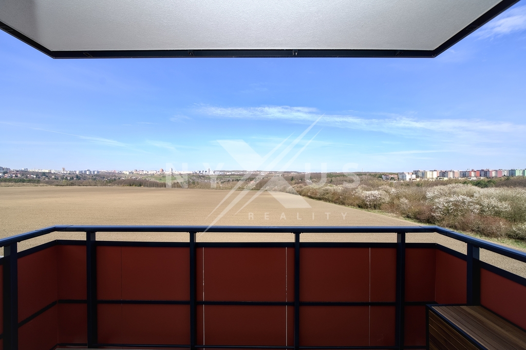 Dominantou bytu je obývací pokoj s kuchyňským koutem a vstupem na balkón, který nabízí příjemný, ničím nerušený výhled. Dispozice dále zahrnuje dva samostatné pokoje, koupelnu a oddělenou technickou místnost s přípravou pro pračku a sušičku.
