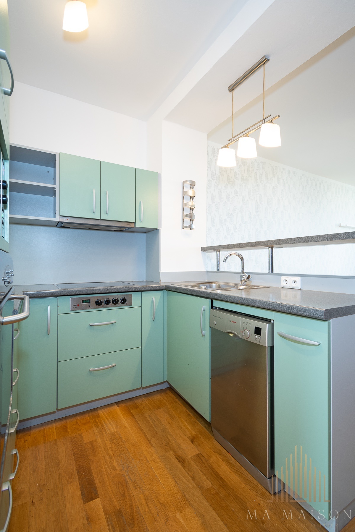 byt je dispozičně rozdělen na prostorný obývací pokoj s kuchyňským koutem. Dále ložnici, dětský pokoj a koupelnu. Z chodby je vstup do obývací místností a koupelny. Vstup do ložnice a dětského pokoje je z obývacího pokoje. Kuchyňská linka je kompletně vybavena (trouba se sklokeramickou deskou, lednice s mrazničkou, digestoř, myčka a mikrovlnná trouba). V obývacím pokoji je jídelní stůl se židlemi a TV stolek, je zde rovněž vstup na balkónek. V chodbě velká šatní skříň a botník. V ložnici rovněž velké skříně. Dětský pokoj kompletně zařízený. V koupelně je vana i sprchový kout. K bytu navíc náleží sklepní kóje cca 2 m², kam pohodlně schováte sportovní vybavení.