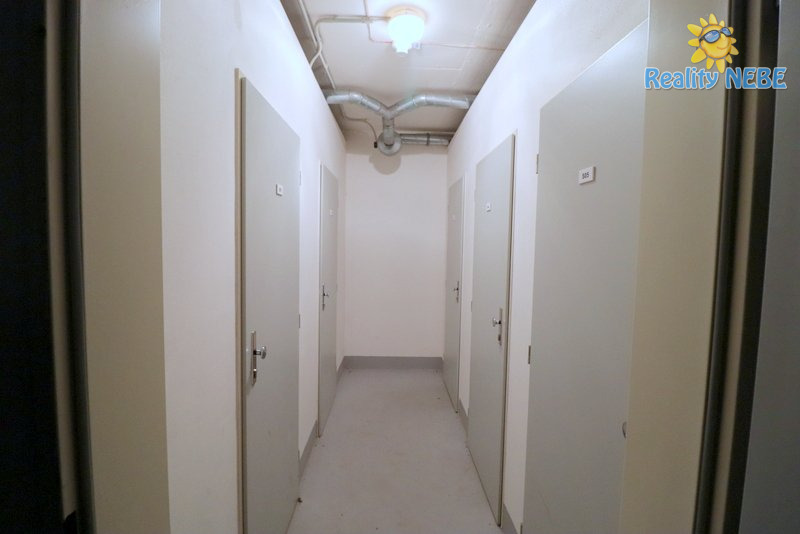 Byt tvoří velký obývací pokoj s kuchyňským koutem a balkonem s výhledem do zeleně, dále dvě neprůchozí ložnice, každá opět s vlastním balkonem, koupelna, WC a úložná komora. K bytu patří také sklep.