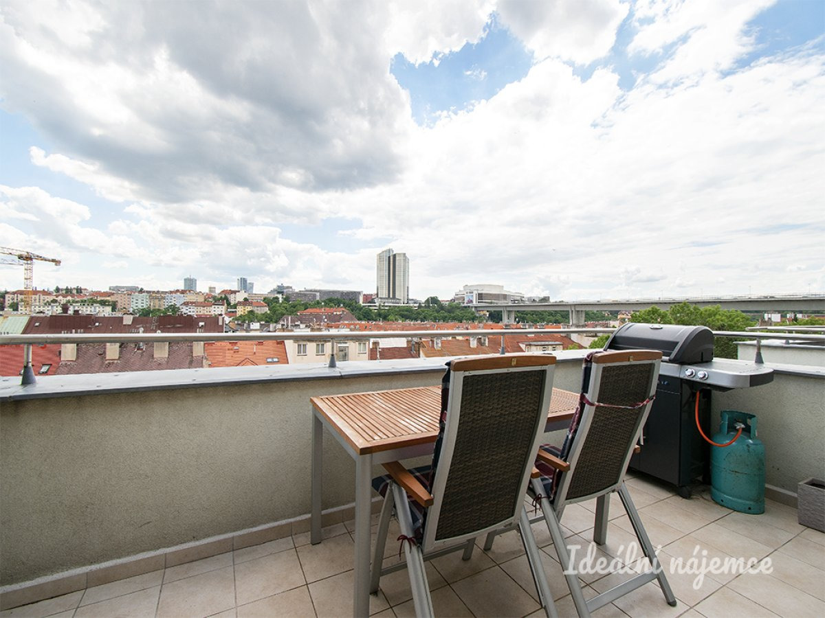 K dlouhodobému podnájmu nabízíme krásný klimatizovaný mezonetový byt o dispozici 3+kk v centru Prahy - Vinohrady. Byt o celkové výměře 106 m2 se nachází v pátém patře cihlového domu s výtahem. K bytu navíc patří krásná terasa s výhledem na Prahu - Vinohrady, plynový gril, jídelní stůl a markýza.