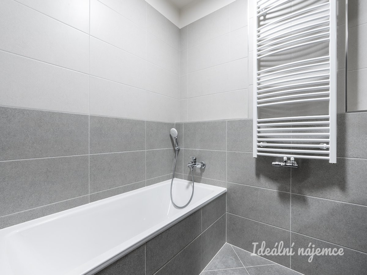 V koupelně se nachází vana, toaleta je oddělená. Z obývacího pokoje i ložnice je přímý vstup na prostornou terasu, která nabízí příjemné venkovní posezení. Součástí bude také vestavěná pračka se sušičkou.