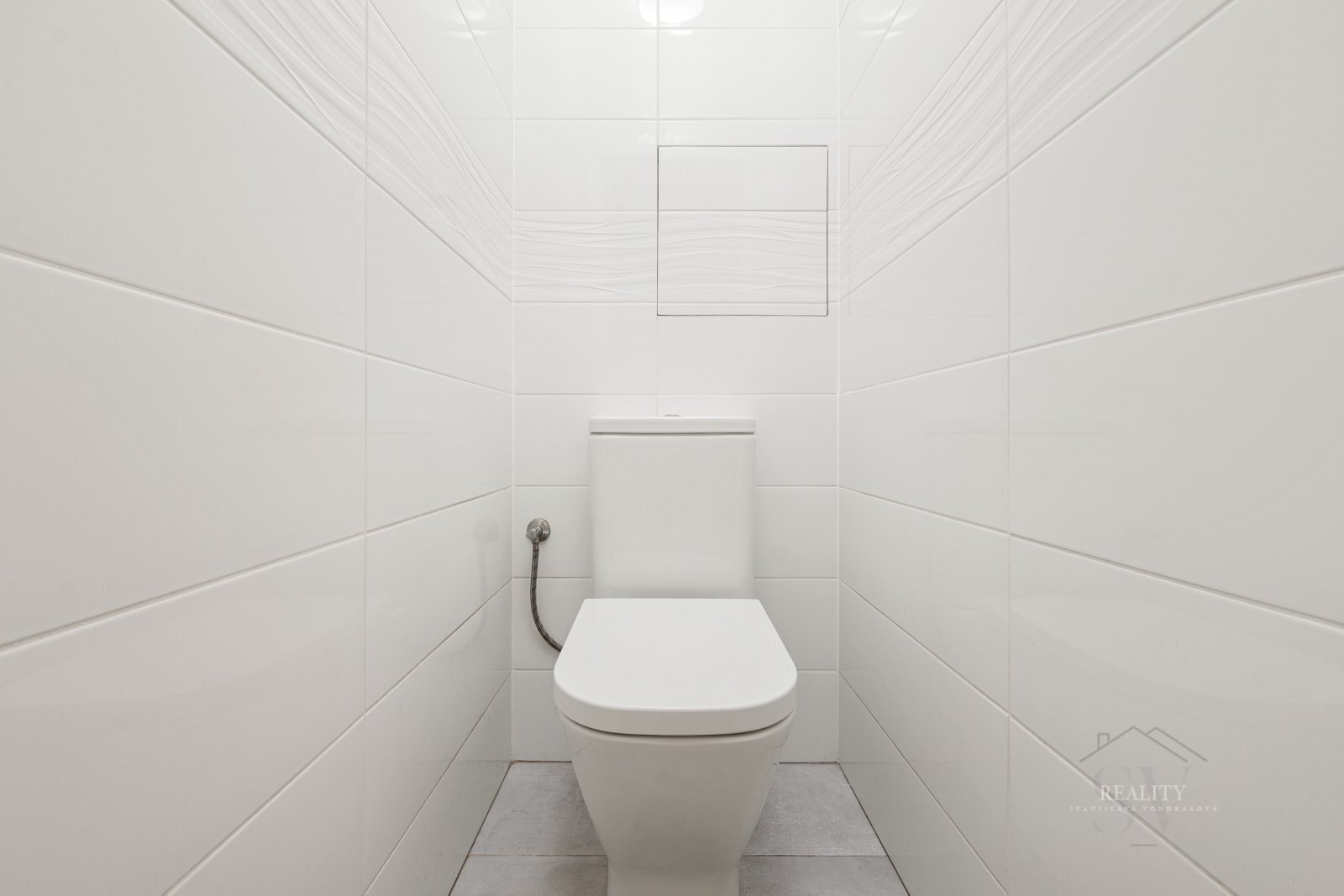 Interiér prošel precizní rekonstrukcí s důrazem na kvalitu materiálů, funkčnost a čistý design. Dominantou bytu je kuchyň na míru s ostrůvkem, vestavěnými spotřebiči, sklokeramickou varnou deskou a komínovým odsavačem. Ostrůvek nabízí i možnost barového sezení. Koupelna je řešena v moderním stylu se sprchovým koutem, toaleta je samostatná. V bytě jsou nové rozvody a elektroinstalace.