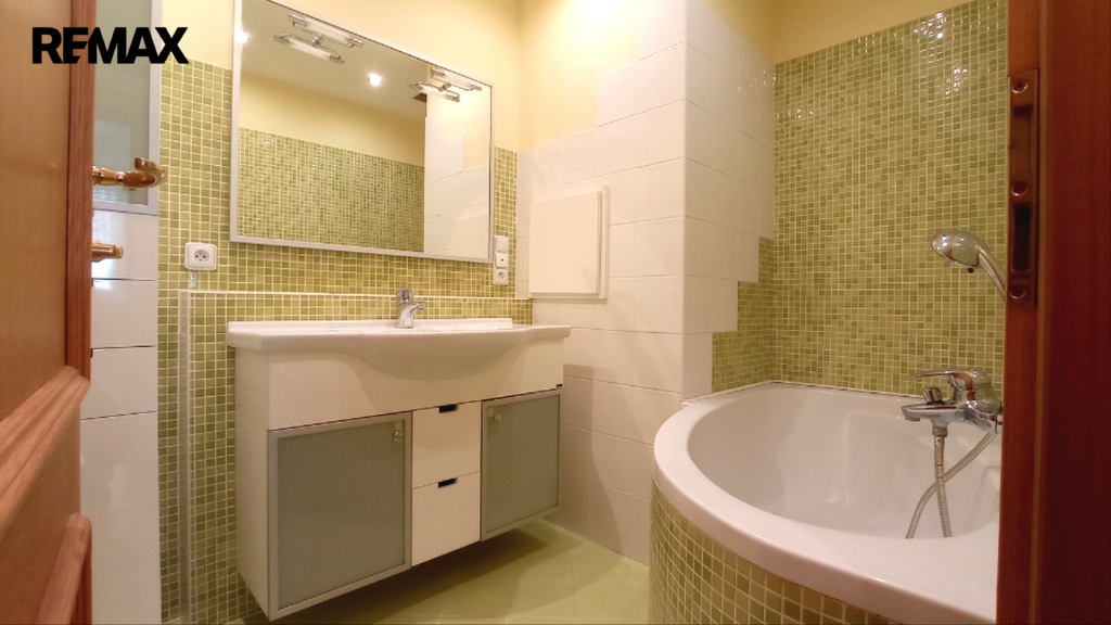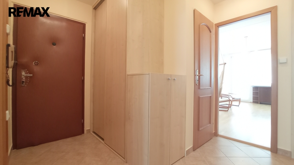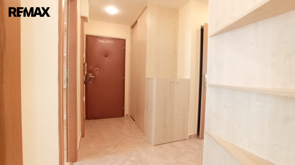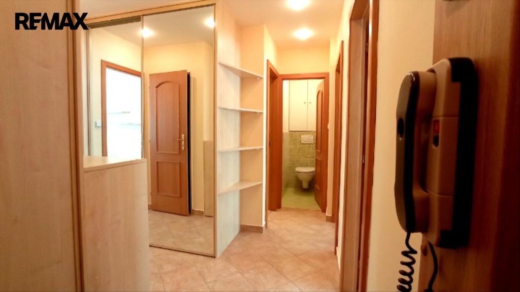 Součástí prostorného obývacího pokoje je moderní kuchyňský kout plně vybavený vestavnými spotřebiči. Velkou výhodou je lodžie, která nabízí příjemné místo k odpočinku. Dvě ložnice na opačné straně bytu jsou oddělené chodbou. Příjemná koupelna s vanou se nachází hned vedle samostatného WC. Ve všech místnostech najdete promyšlené úložné prostory a navíc má byt také vlastní komoru/spíž. Byt je částečně vybavený, v ložnicích nejsou postele a v obývací části chybí pohovka a jídelní stůl.